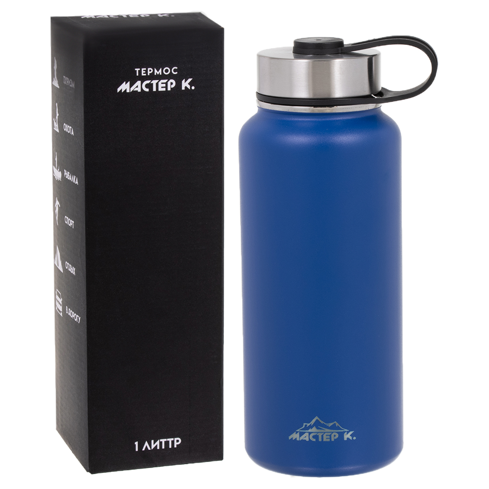 Термос "мастер к", 1 л, две крышки, сохраняет тепло до 12 ч, синий
