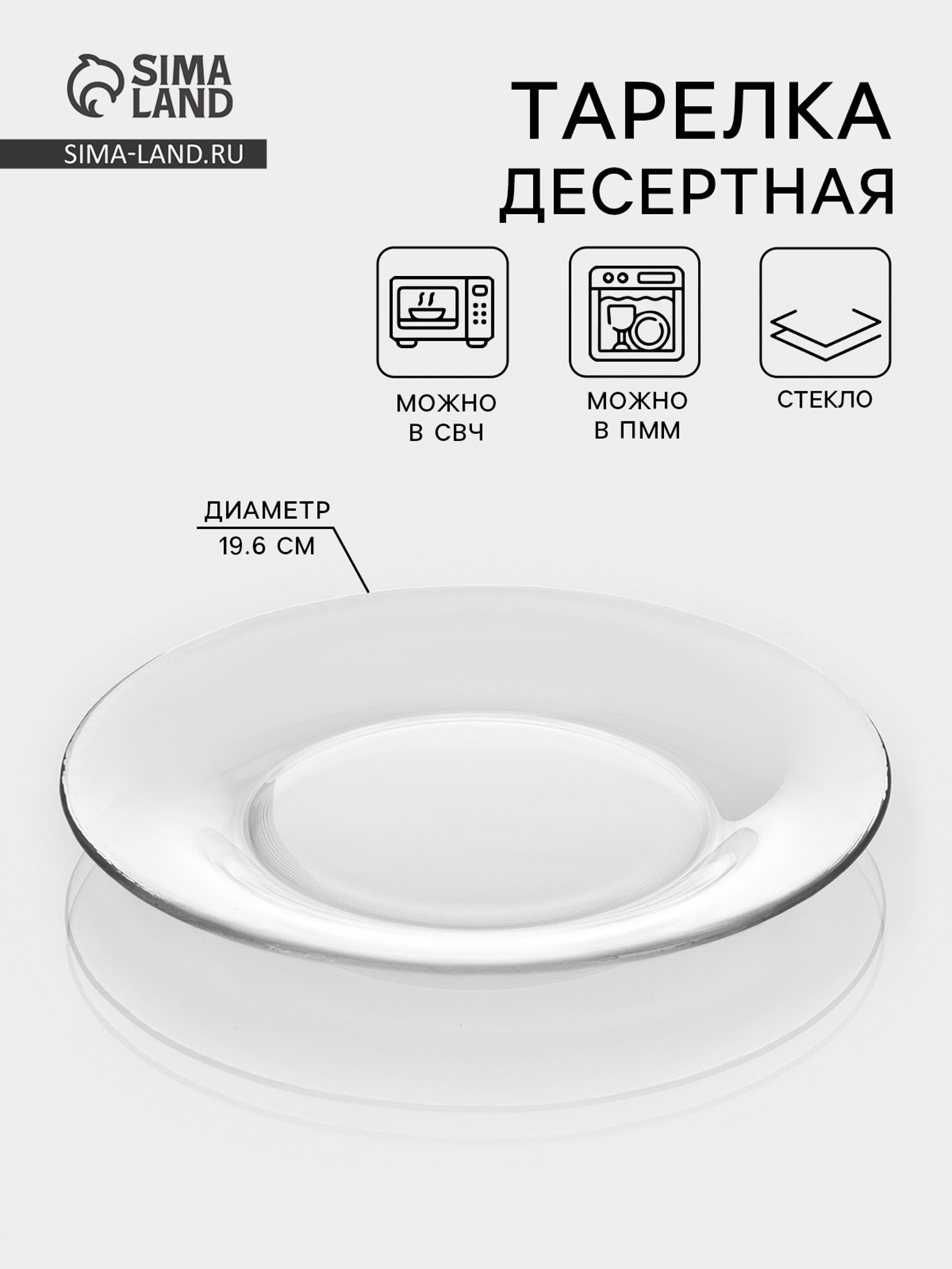 Десертная тарелка «симпатия», D=19.6 см, стекло, прозрачная