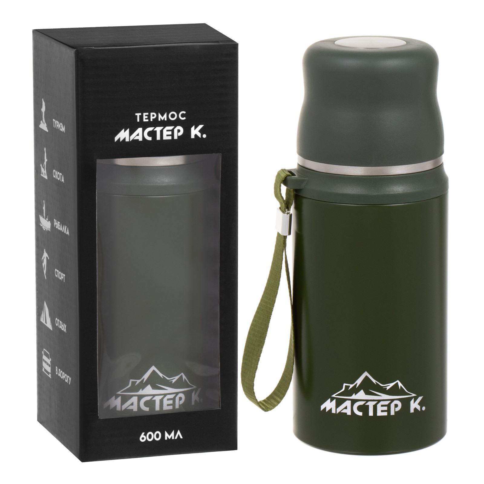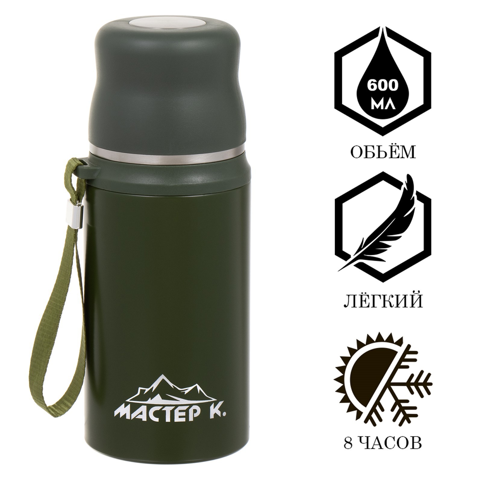 Термос, 600 мл, гильза "мастер к", с кружкой, сохраняет тепло до 8 ч