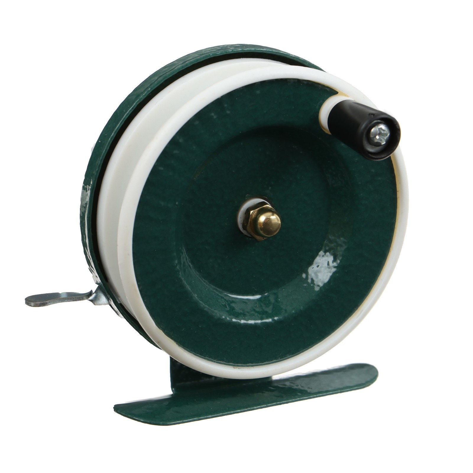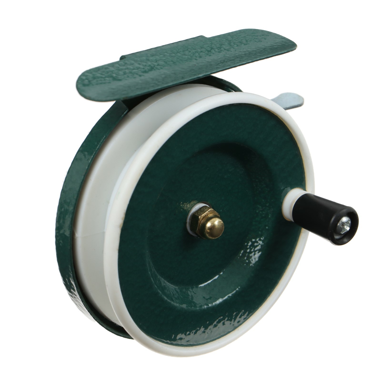 Катушка инерционная, металл пластик, диаметр 6.5 см, цвет темно-зеленый/белый, 801