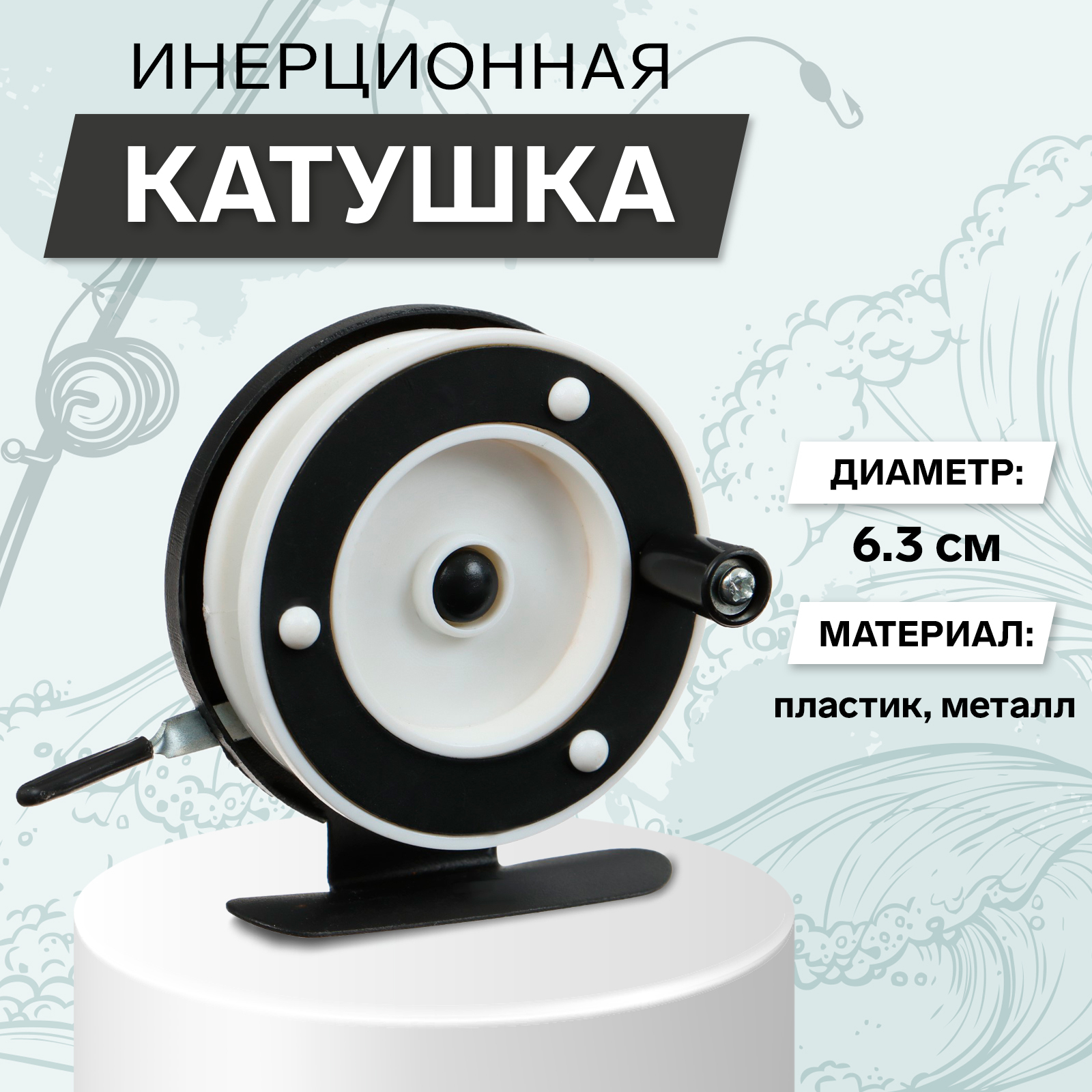 Катушка инерционная, металл пластик, диаметр 6.3 см, цвет черный белый, 701a