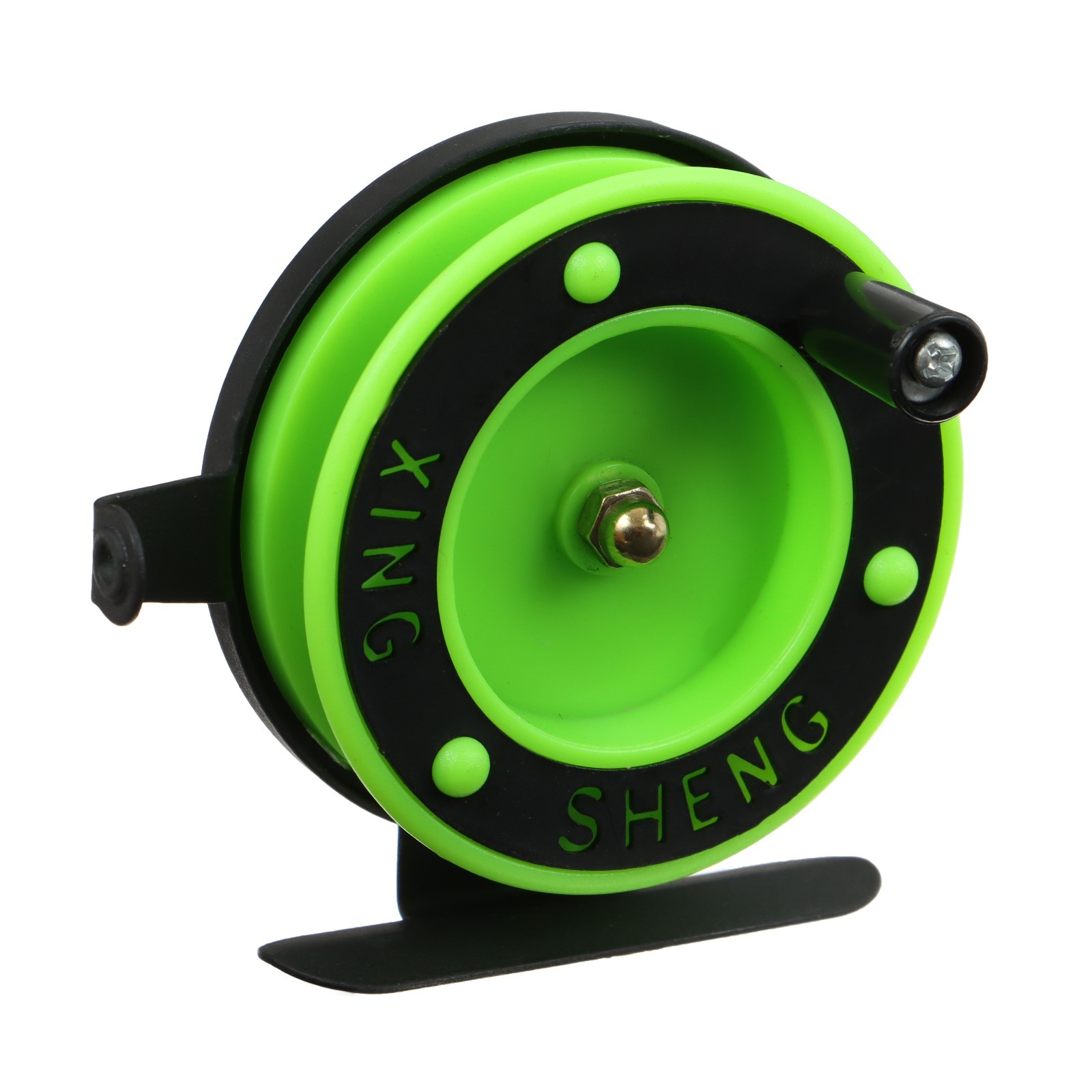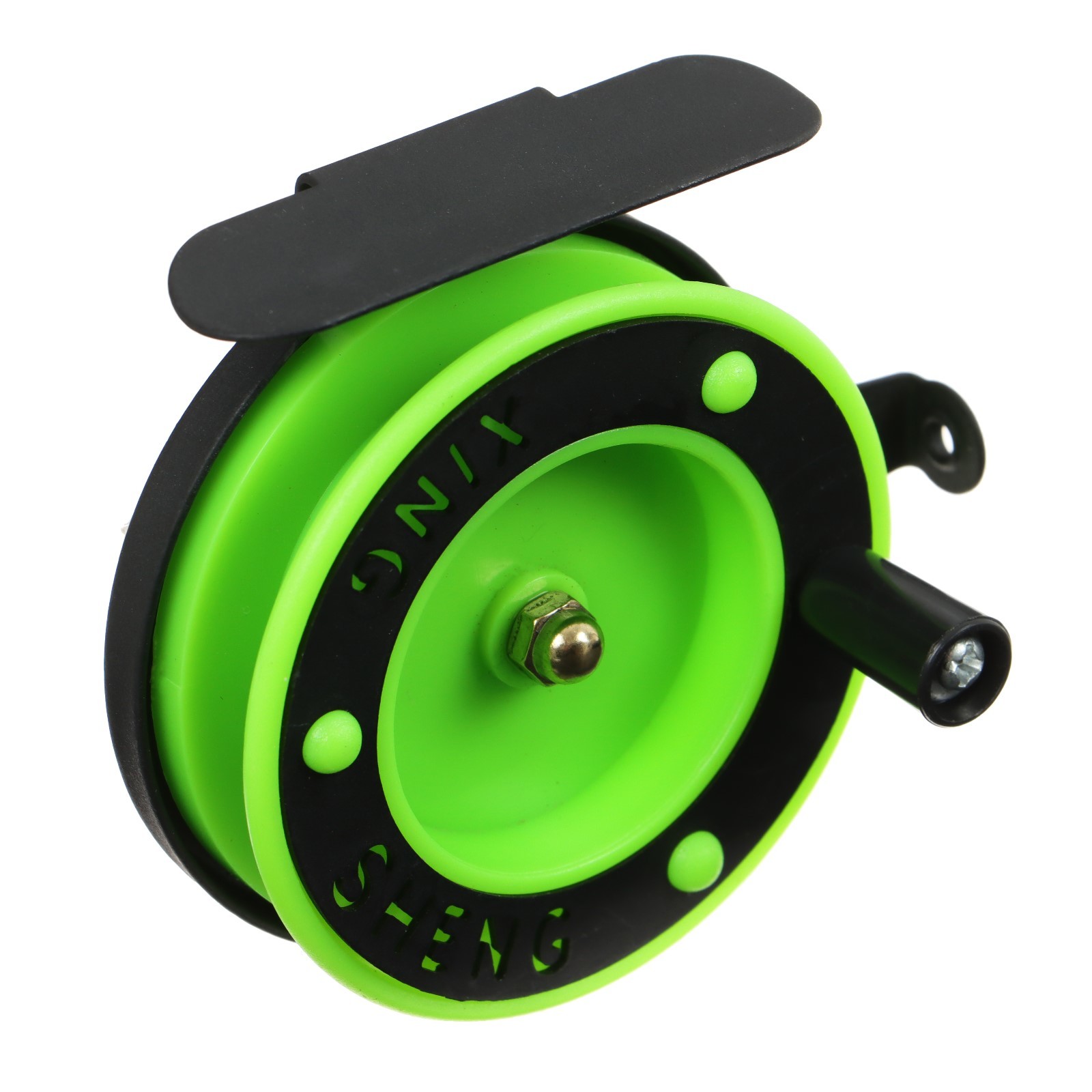 Катушка инерционная, металл пластик, диаметр 6.5 см, направляющая, черно-салатовый, 701d