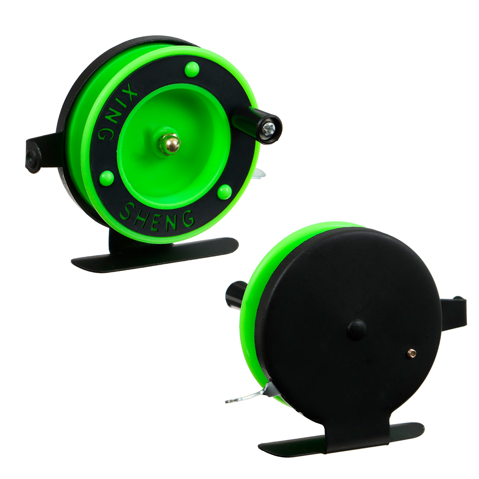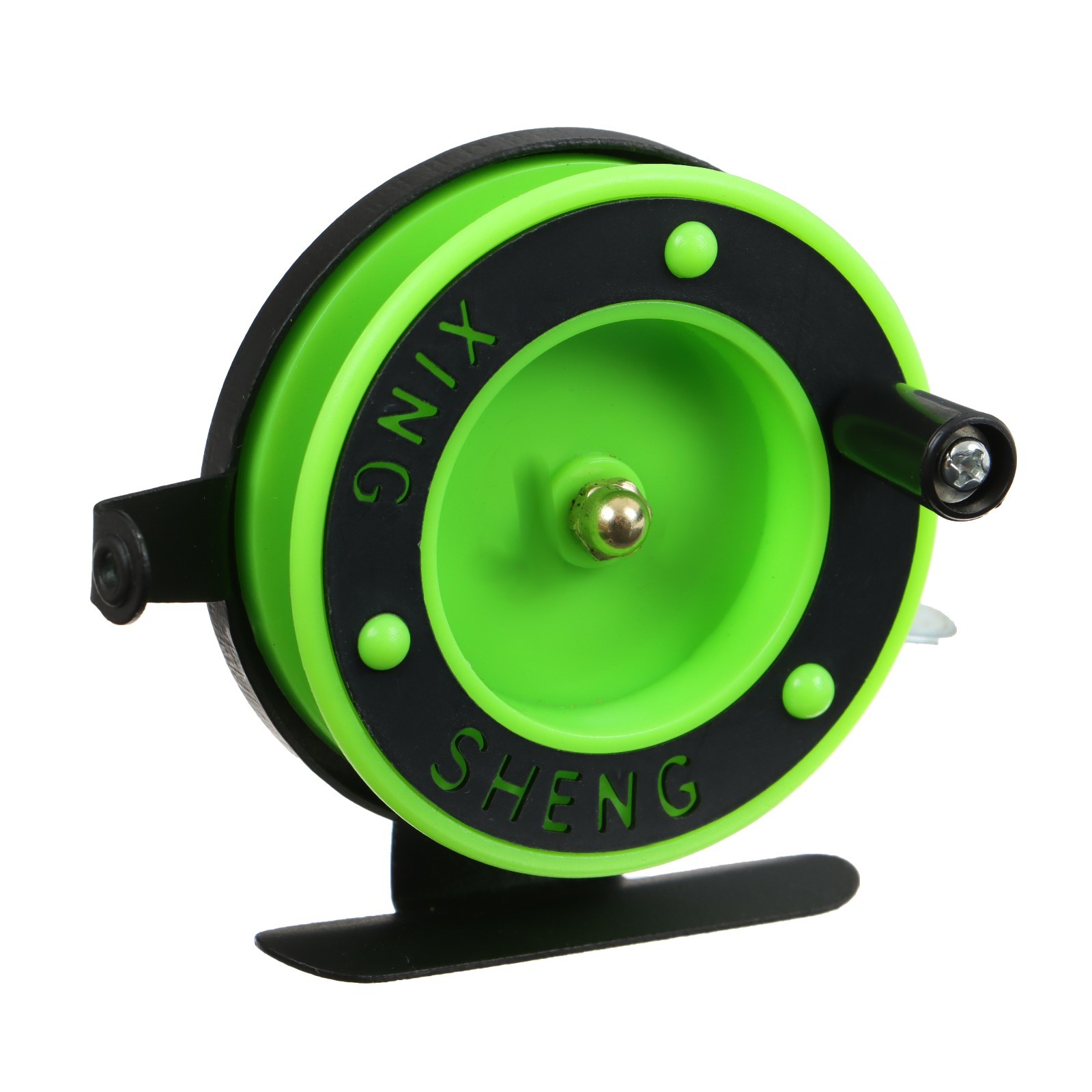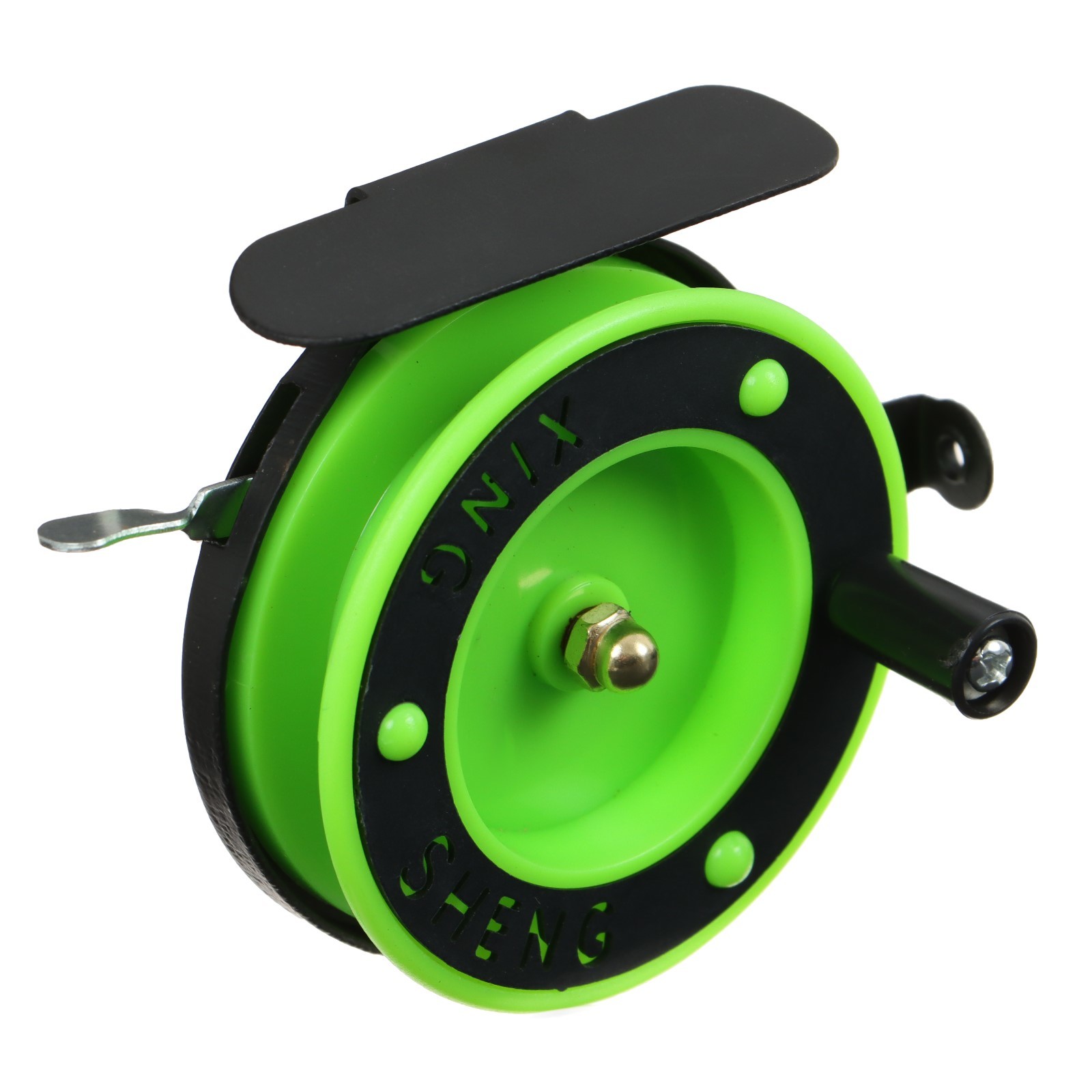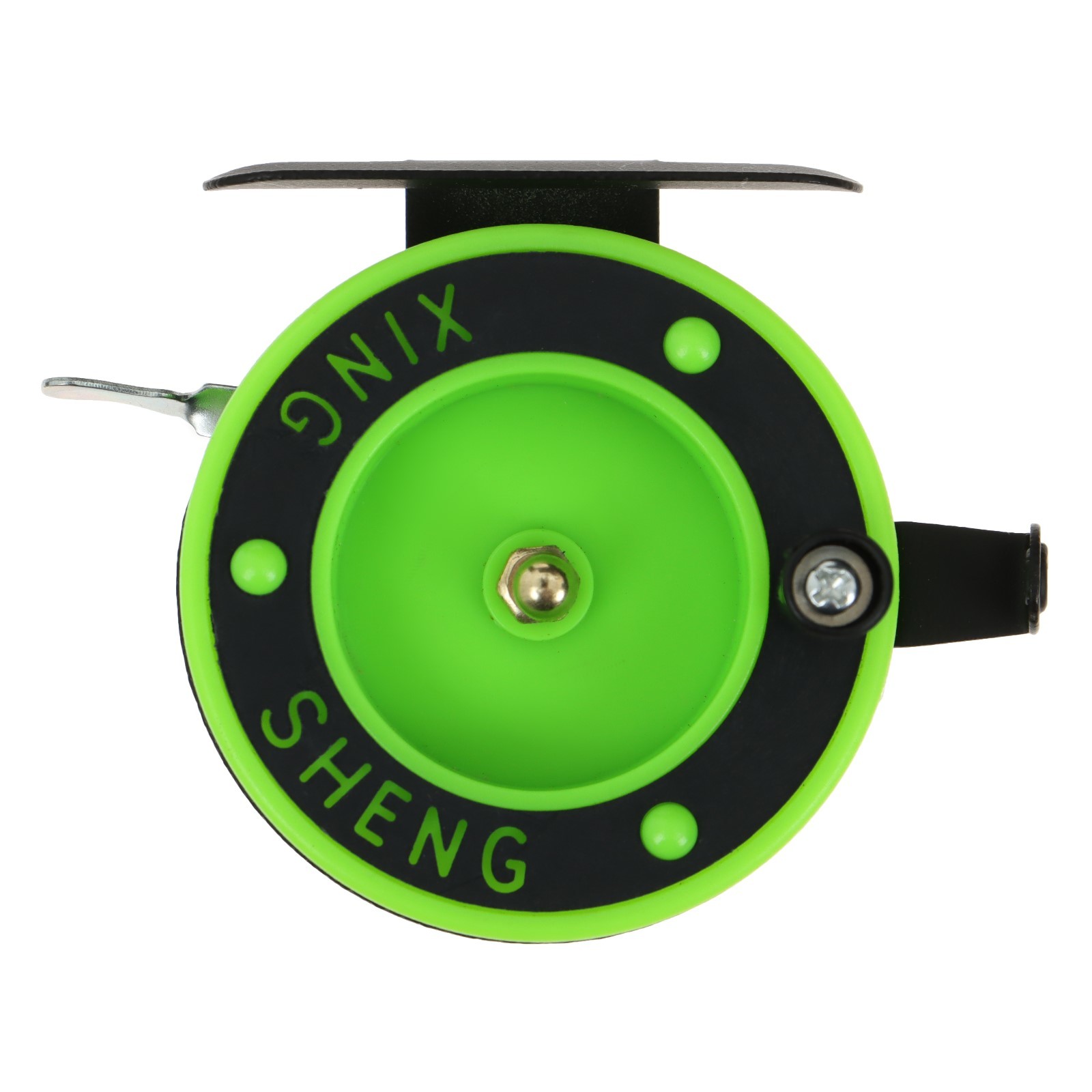 Катушка инерционная, металл пластик, диаметр 6.5 см, направляющая, черно-салатовый, 801d