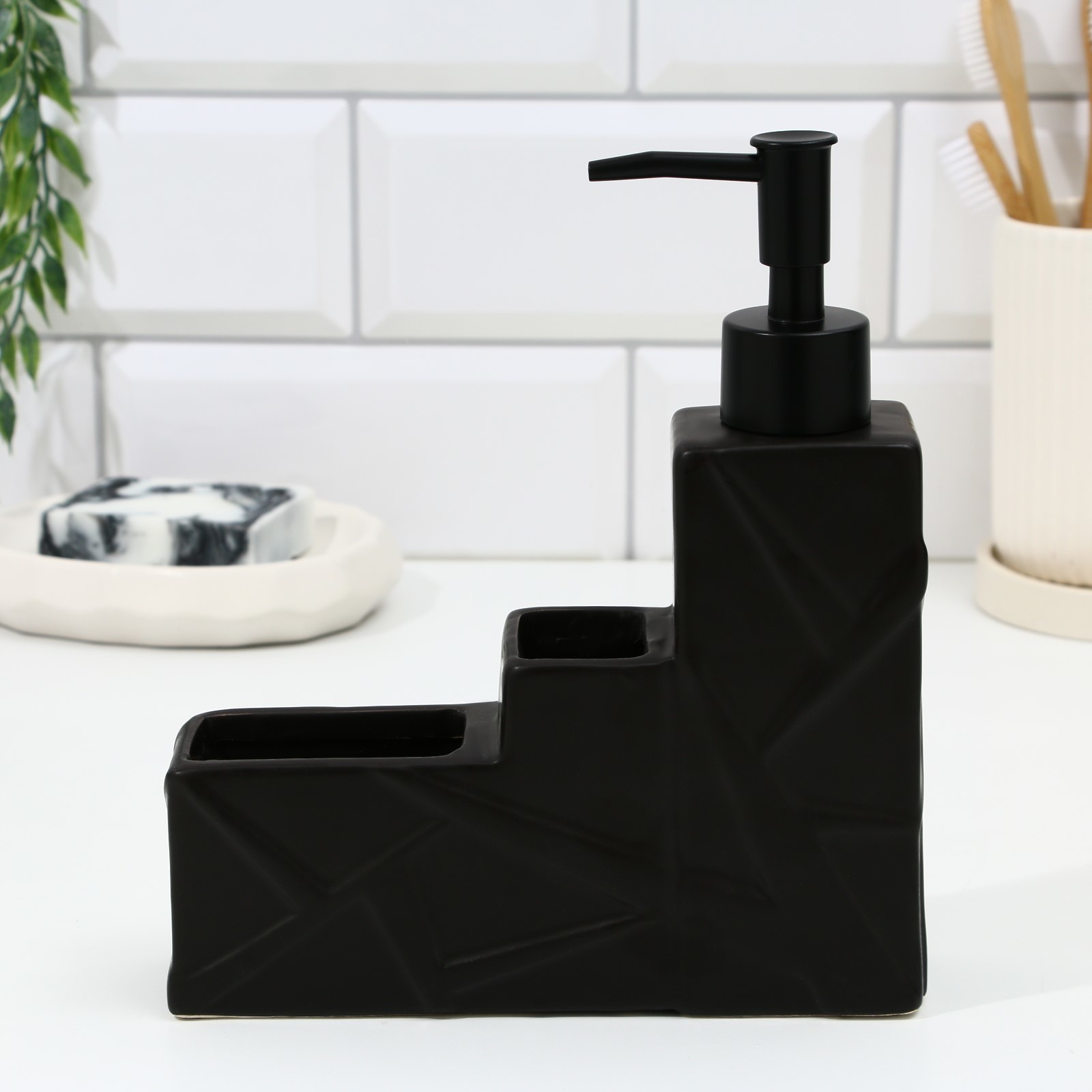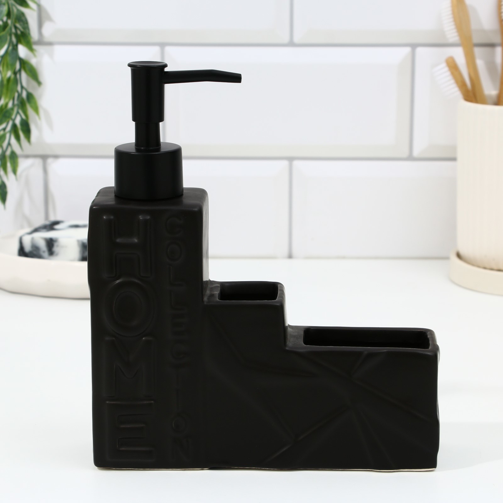 Дозатор для жидкого мыла,черный ,16 х 12 х 4 см.. Дозатор для моющего средства- это незаменимая вещь для кухни или ванной. Диспенсер кухонный с подставкой для губки. Дозатор подойдёт для средства для мытья посуды или жидкого мыла. Специальное отделение для губки сэкономит место у раковины и обеспечит более комфортное хранение необходимых вещей на кухне или в ванной. Вы можете залить в дозатор любое средство для мытья посуды или мыло для рук, изделие будет экономно их расходовать. Отличное решение, чтобы поддерживать порядок на кухне. Компактный размер дозатора и продуманное исполнение, делают его идеальным для размещения в зоне мойки на кухне или раковины в ванной. Такой диспенсер будет уместен как дома, в квартире, так и на даче или в саду. Диспенсер для жидких моющих средств с отделением для губки - это отличный выбор для подарка на любой праздник: новый год, 8 марта, 23 февраля, 14 февраля, день рождения, новоселье или просто повод обновить интерьер. Цвет: Чёрный Количество отсеков: 3 Объём, мл: 200 Объём, мл: 250 tnved: 6912008500 Материал: Керамика Наличие губки/щётки: Нет Дисплей: Нет Настенные: Нет Тип: Дозатор (диспенсер) Способ заправки: Наливной Механизм управления: Ручной  развернуть описание ▼