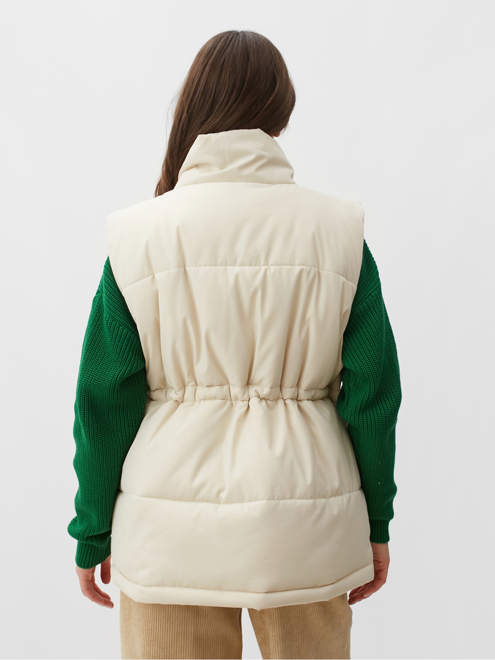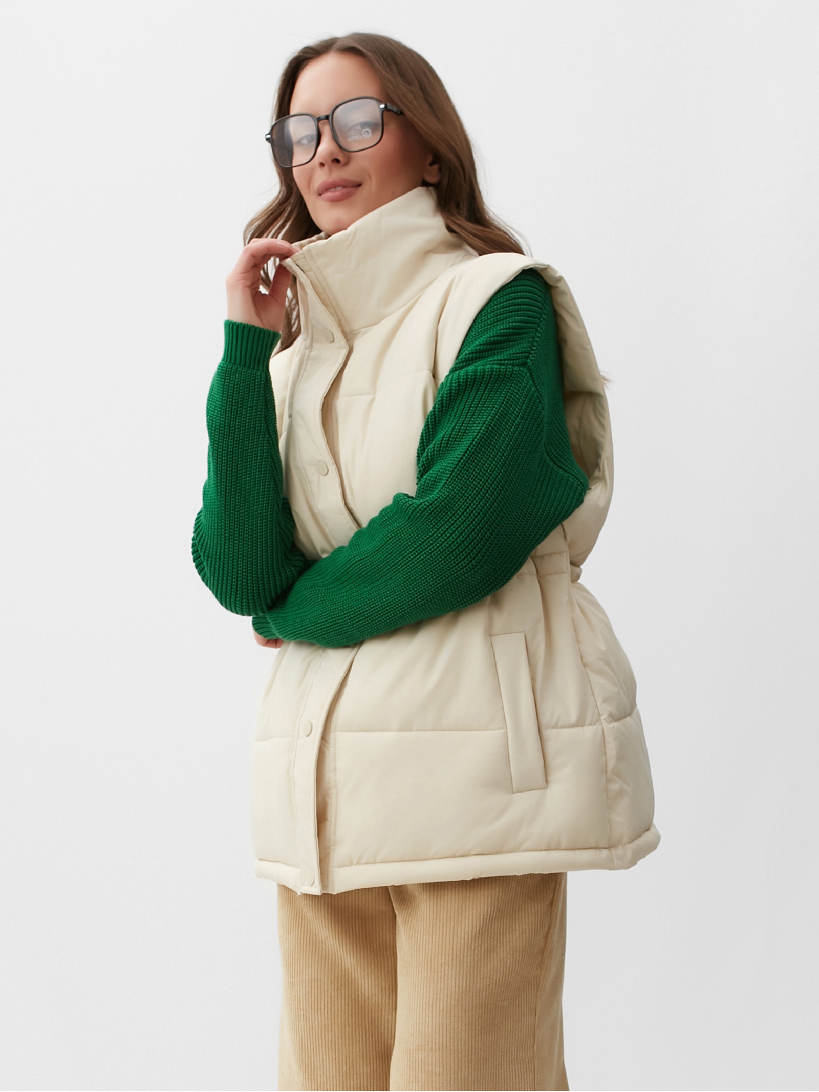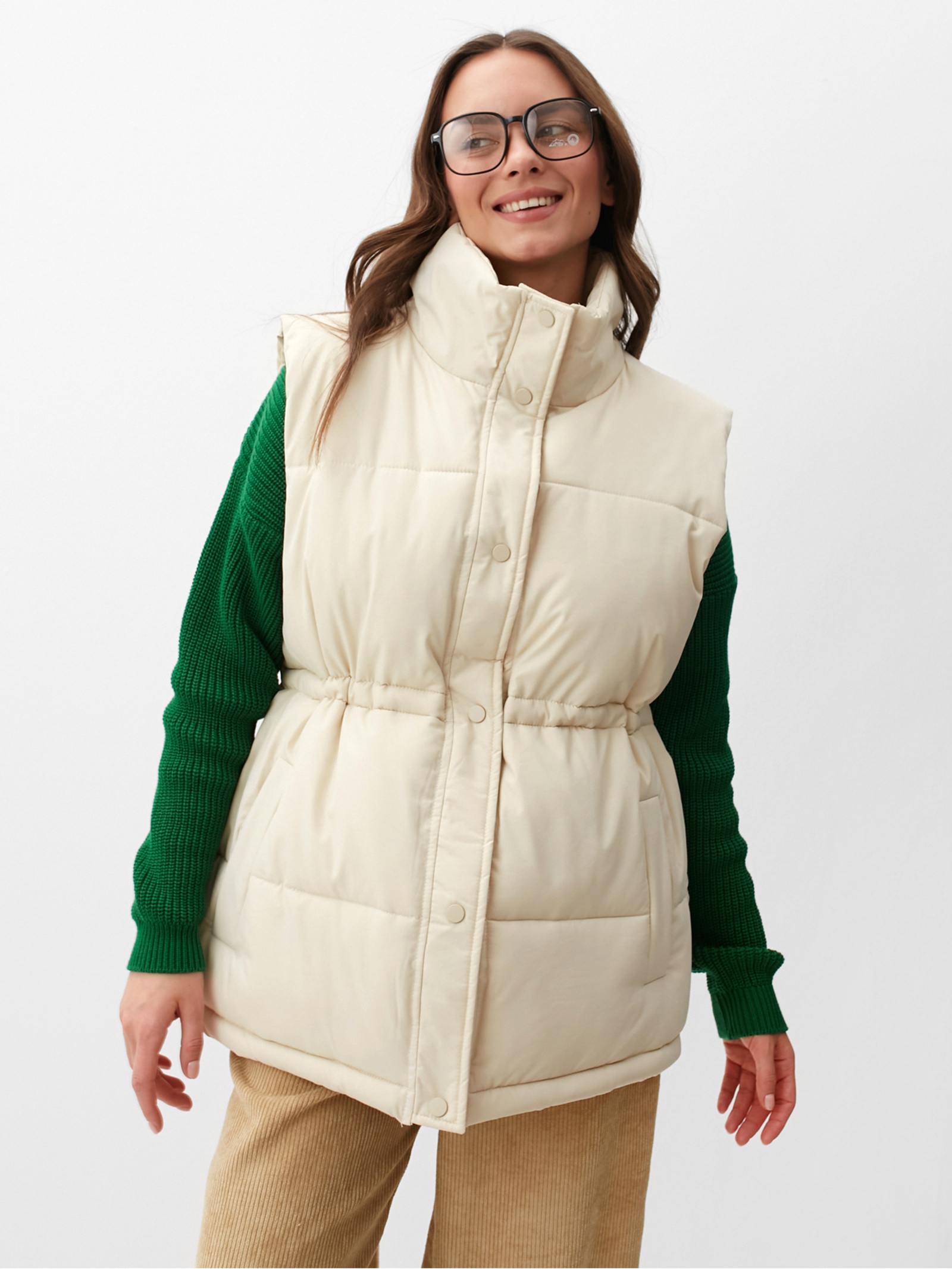 Жилет женский демисезонный mist, размер xs, молочный. Цвет:Бежевый|Для кого:Для женщины|Назначение:Повседневная|Размер:42|Рост, см:165 - 175|Рост модели на фото, см:167|Сезон:Демисезон|Материал утеплителя:Искусственный лебяжий пух|Вид застёжки:Кнопка|Тематика:Однотонная|Длина рукава:Длинный|Вырез горловины:Воротник-стойка|Декоративные элементы:Без элементов|Покрой:Полуприлегающий|Тип карманов:Прорезной|Тип рукава:Без рукава|Рекомендации по уходу:Деликатная стирка при 30 °С|Рекомендации по уходу:Не отбеливать|Рекомендации по уходу:Барабанная сушка запрещена|Температурный режим:От -10 до +5 °С|Материал верха:Курточная ткань|Состав ткани:Полиэстер|Страна:Китай  развернуть описание ▼