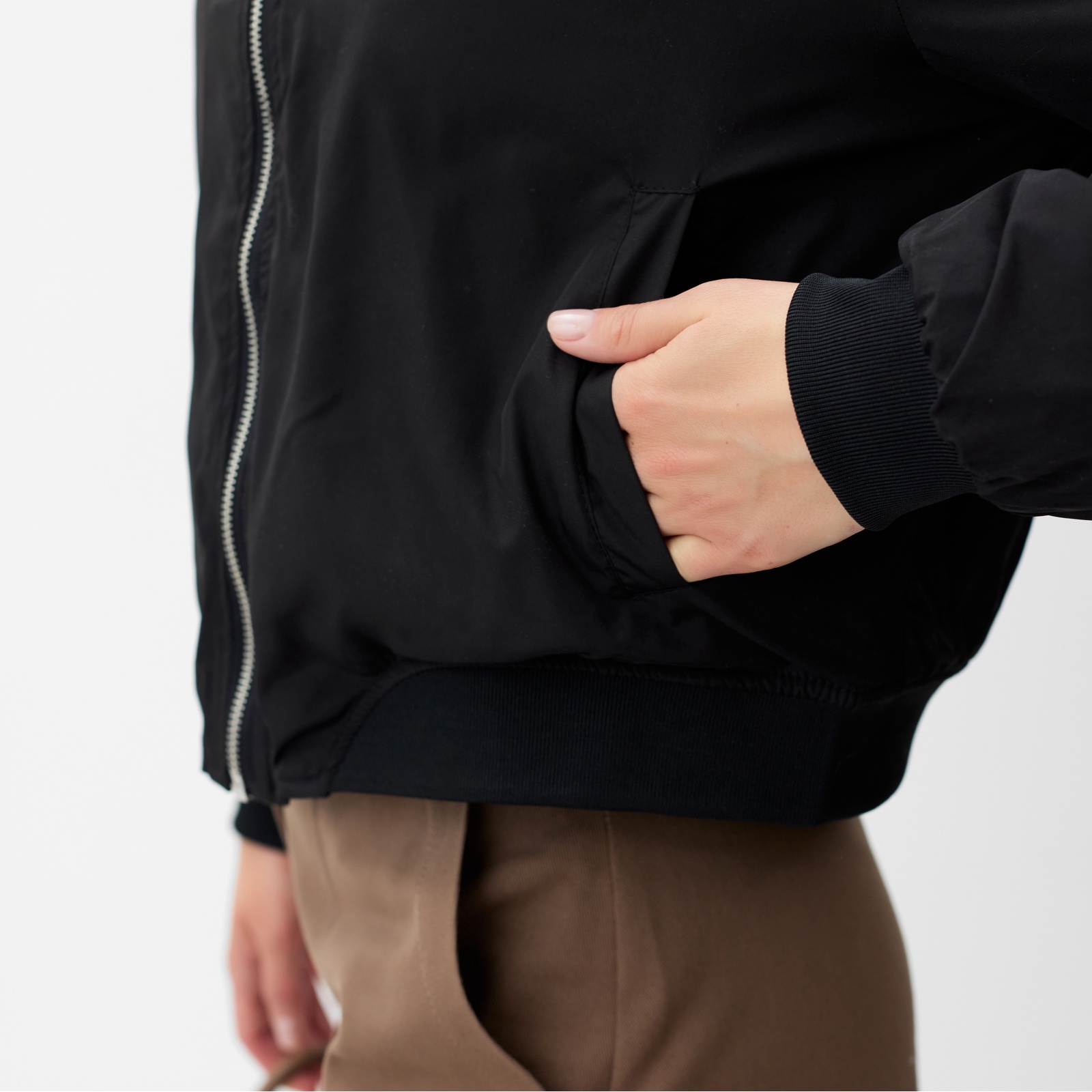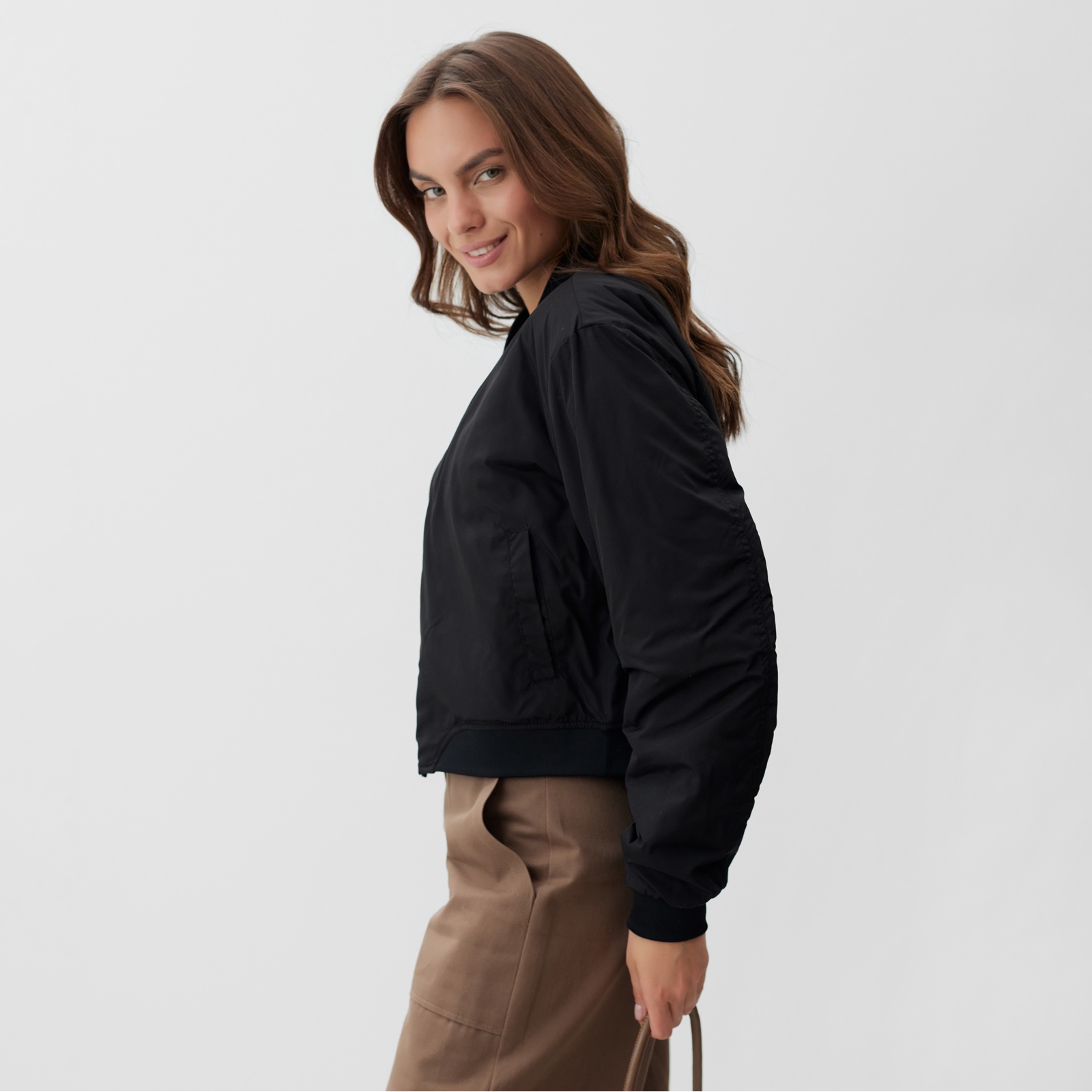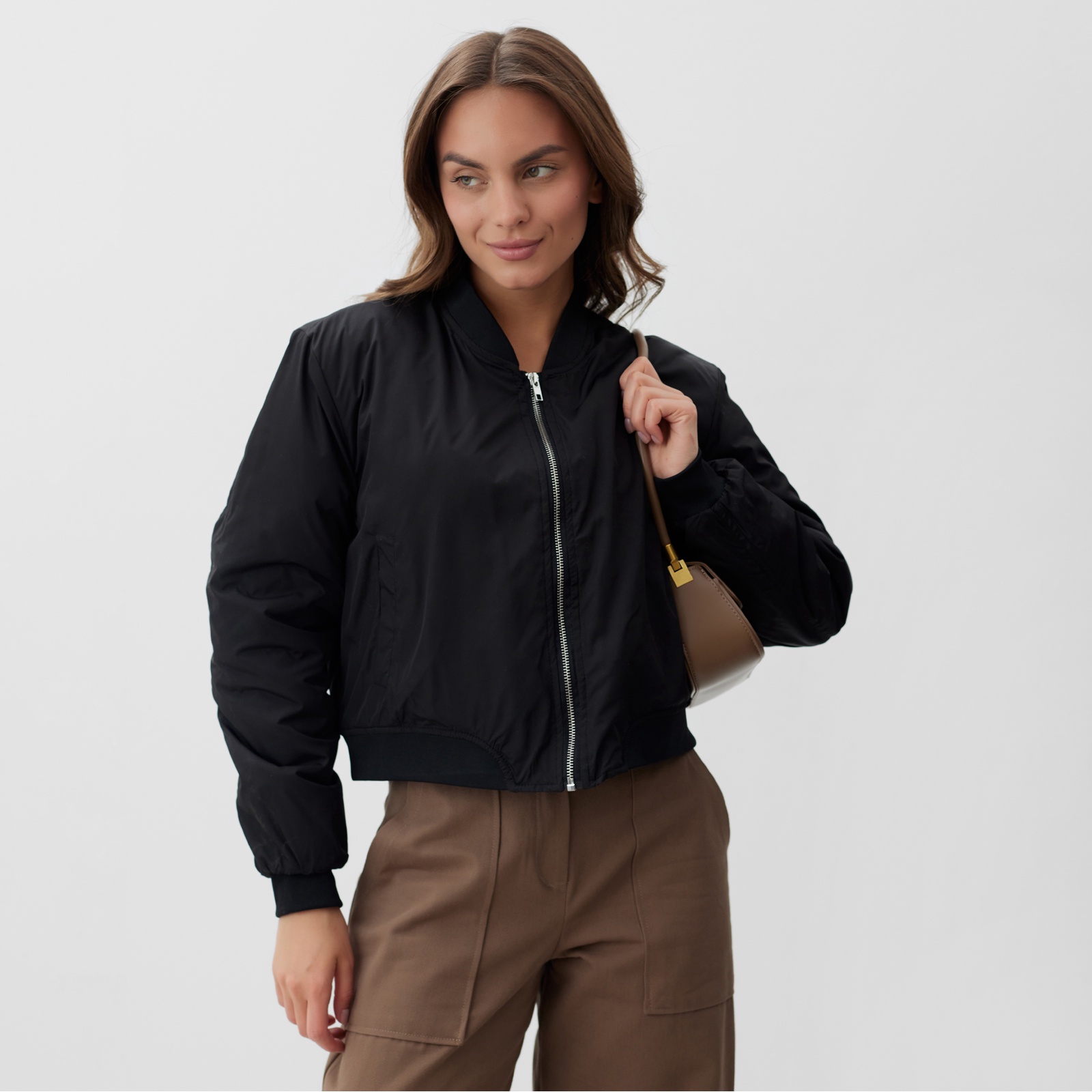 Бомбер женский демисезонный mist, размер l, чёрный. Цвет:Чёрный|Для кого:Для женщины|Назначение:Повседневная|Размер:46|Рост, см:165 - 170|Рост модели на фото, см:167|Сезон:Демисезон|Материал утеплителя:Синтепон|Вид застёжки:Молния|Тематика:Однотонная|Длина рукава:Длинный|Вырез горловины:V-образный|Декоративные элементы:Без элементов|Покрой:Свободный|Тип карманов:Прорезной|Тип рукава:Втачной|Рекомендации по уходу:Деликатная стирка при 30 °С|Рекомендации по уходу:Барабанная сушка запрещена|Рекомендации по уходу:Не отбеливать|Температурный режим:Не ниже 0 °С|Материал верха:Курточная ткань|Состав ткани:Полиэстер|Страна:Китай  развернуть описание ▼