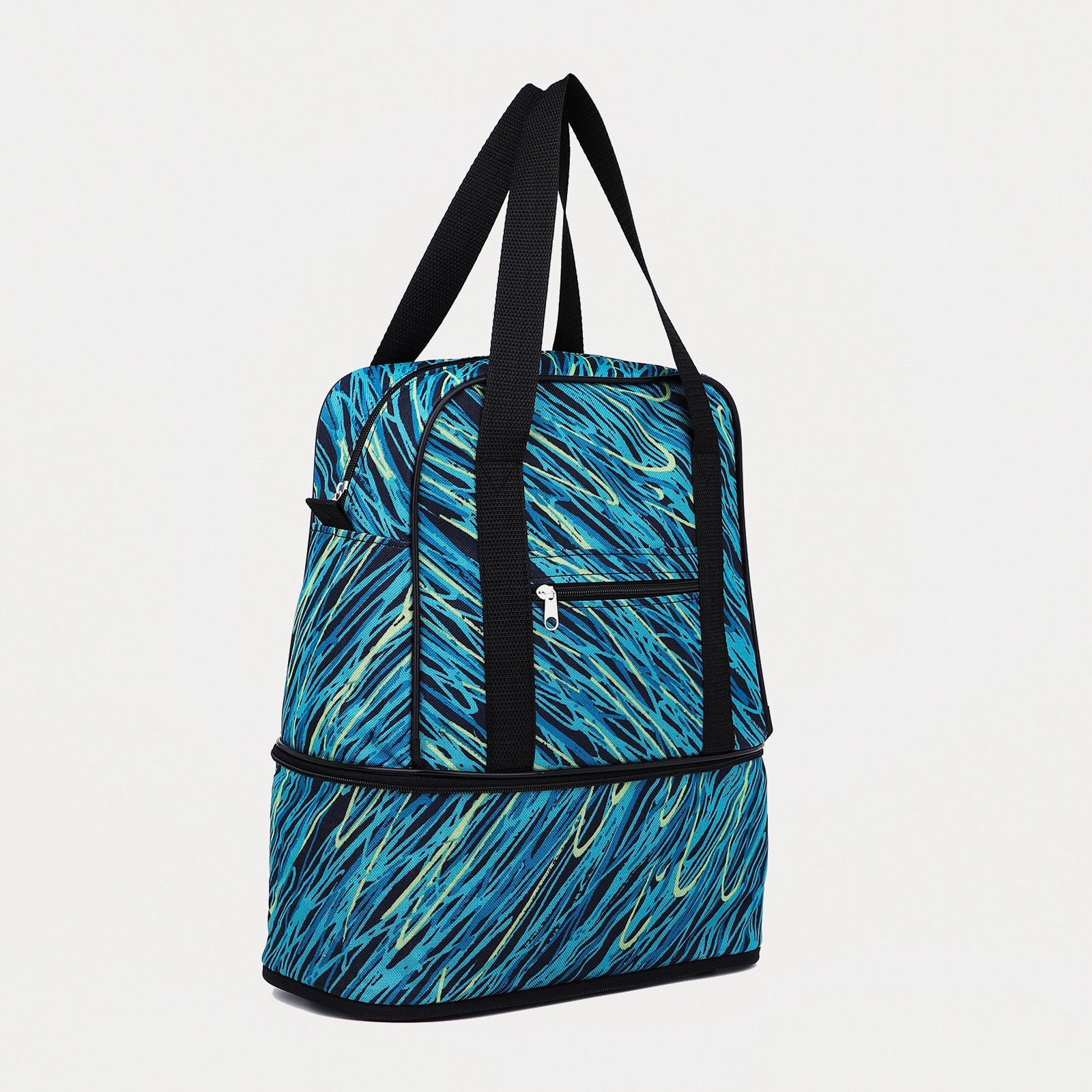 Сумка хозяйственная на молнии, наружный карман, с увеличением, цвет синий/бирюзовый