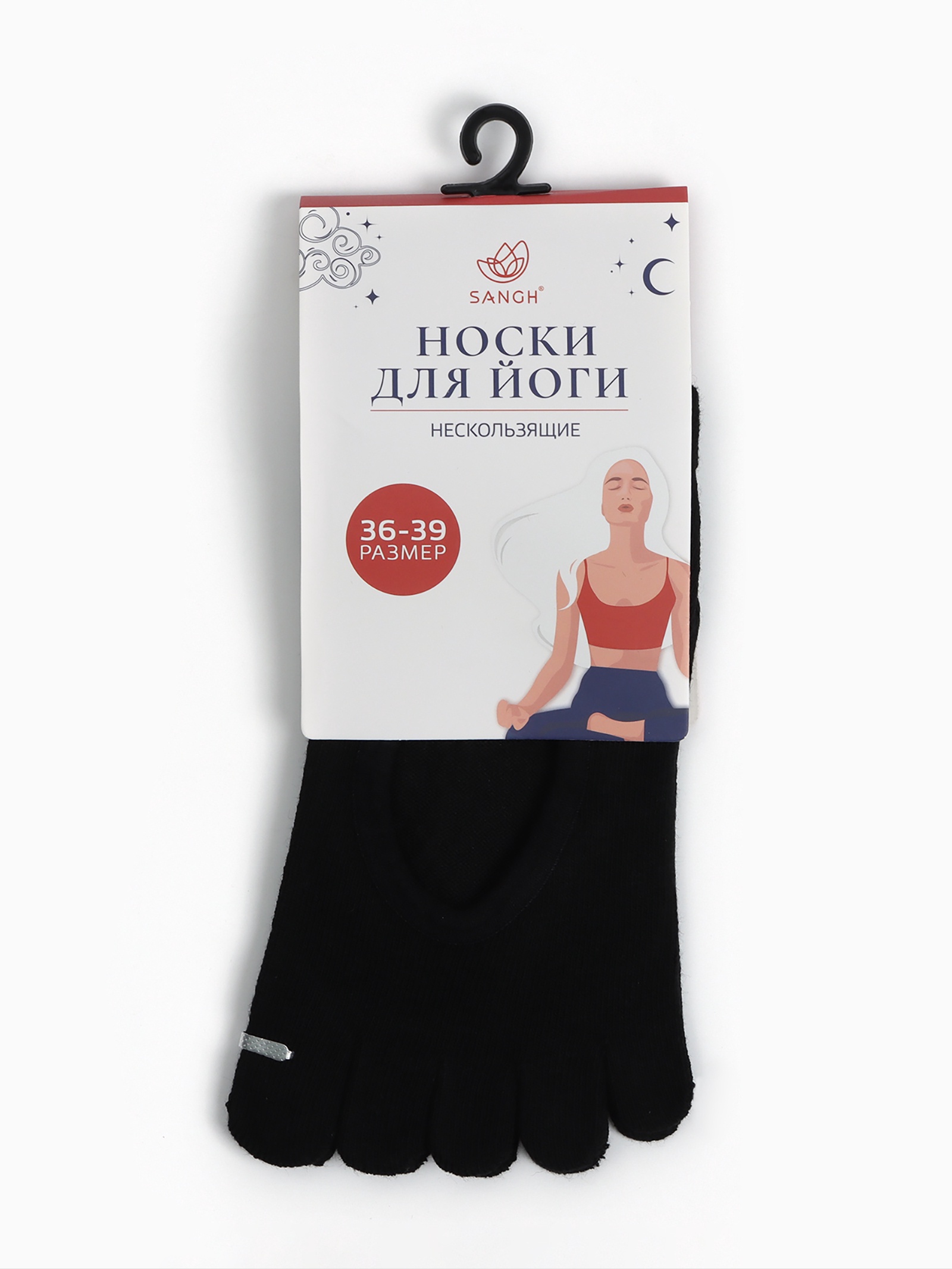 Носки для йоги Sangh, р.36-39, прорезиненные, черные