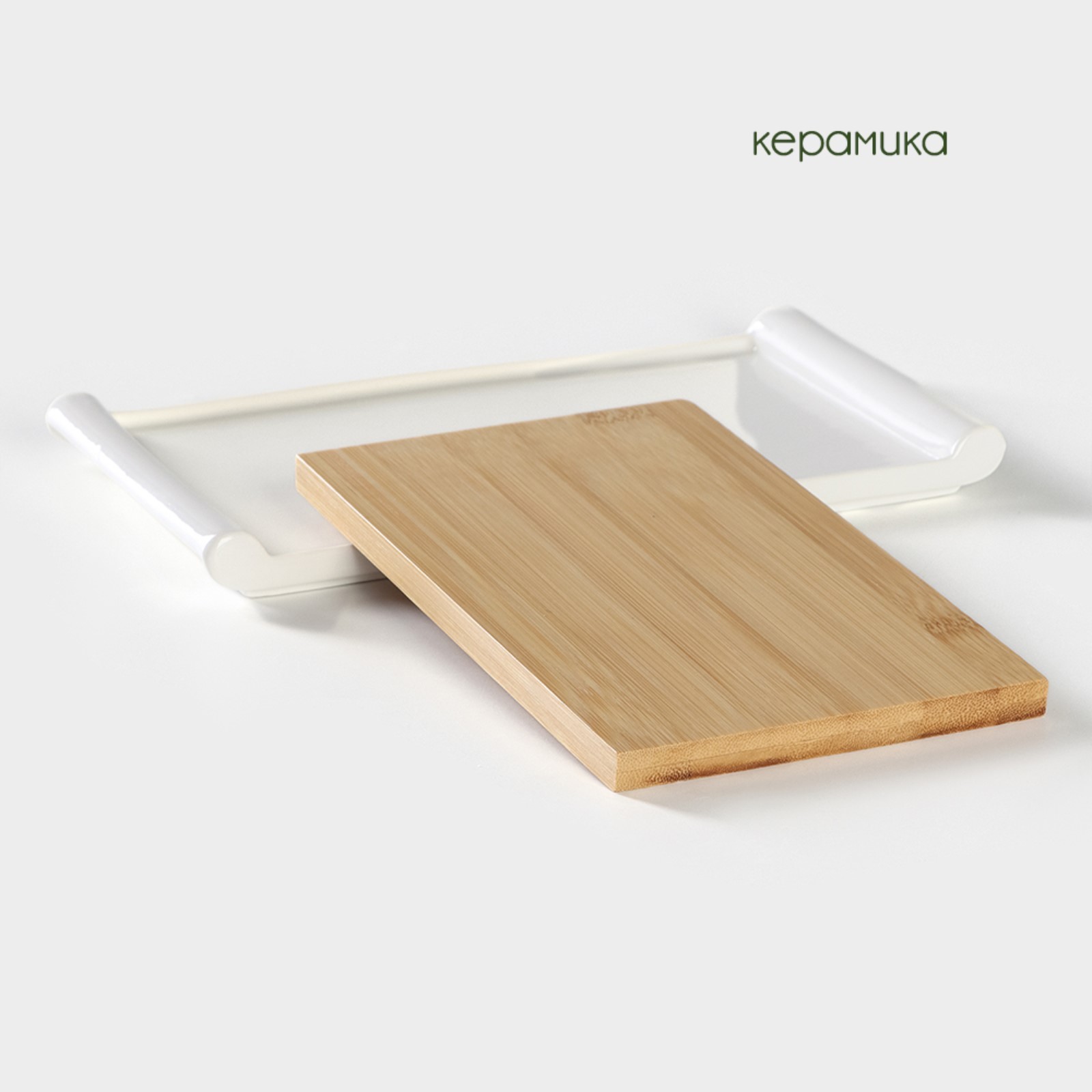Блюдо для подачи керамическое с вставкой из бамбука Bellatenero, 25,5x14,5x2,3 см