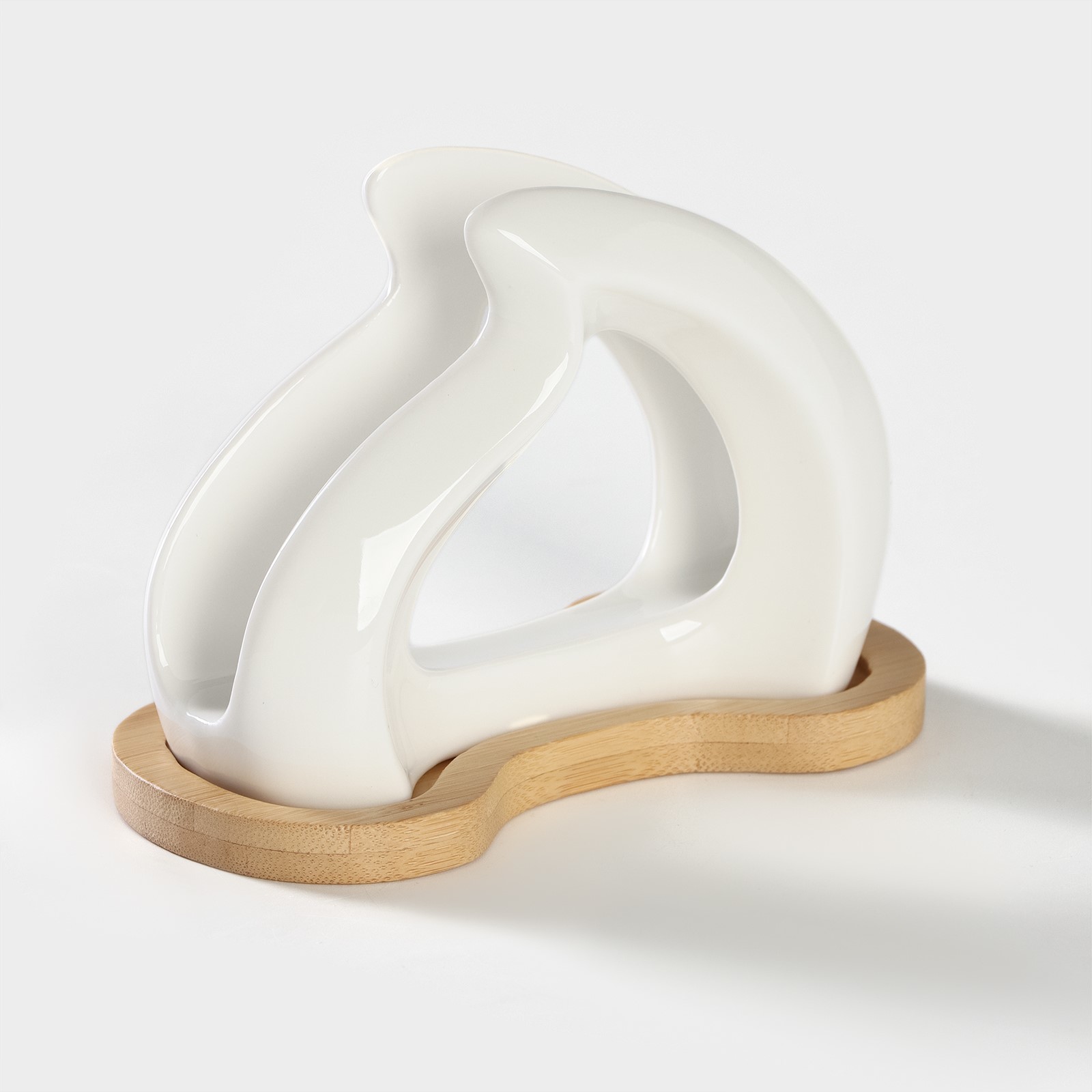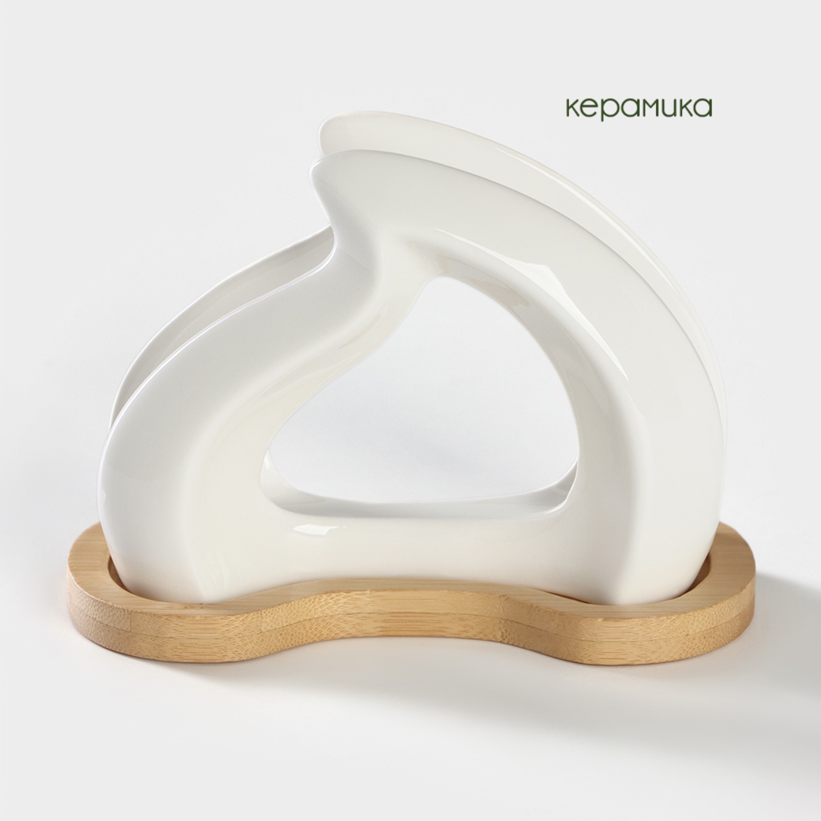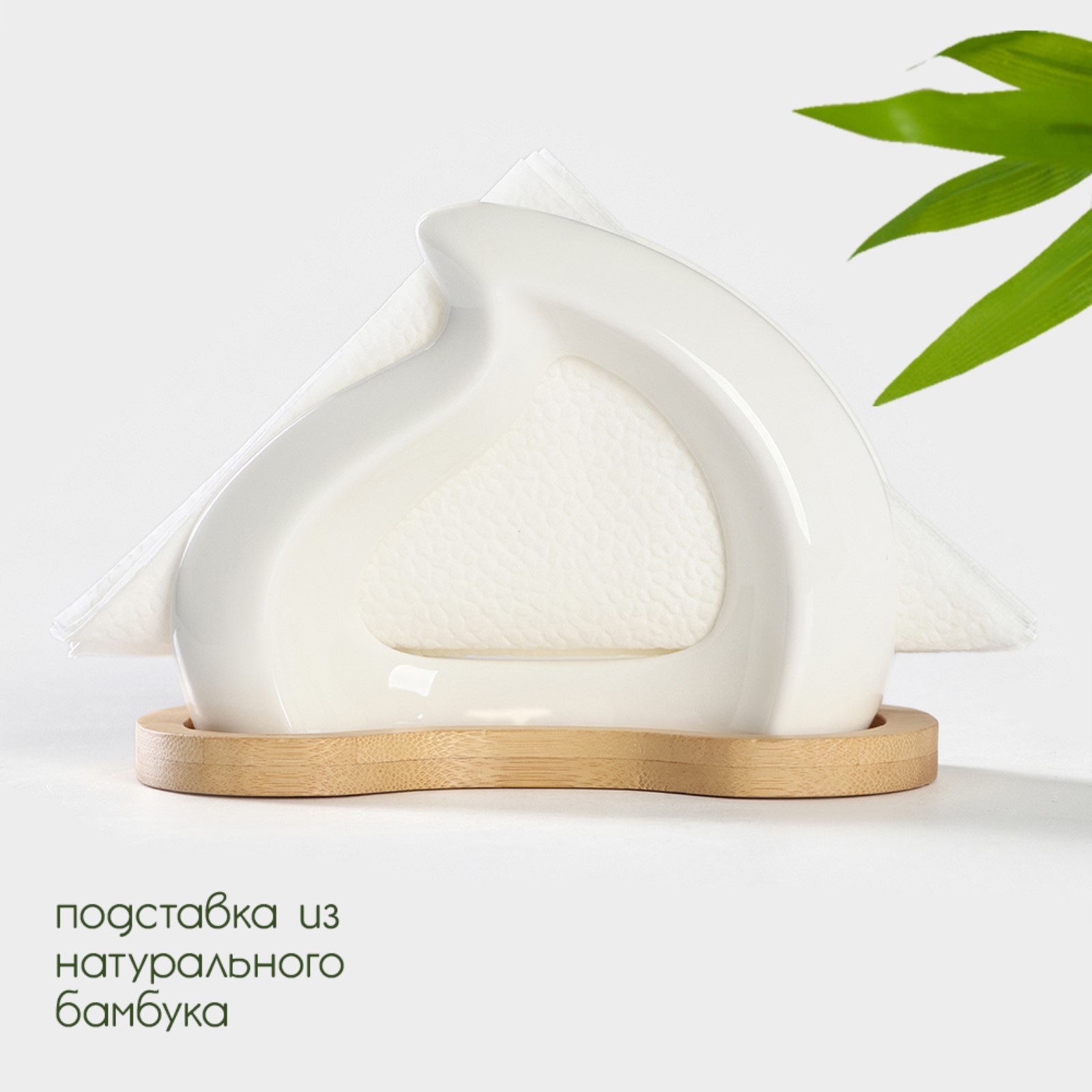 Салфетница керамическая на бамбуковой подставке Bellatenero, 14x7x10 см, цвет белый