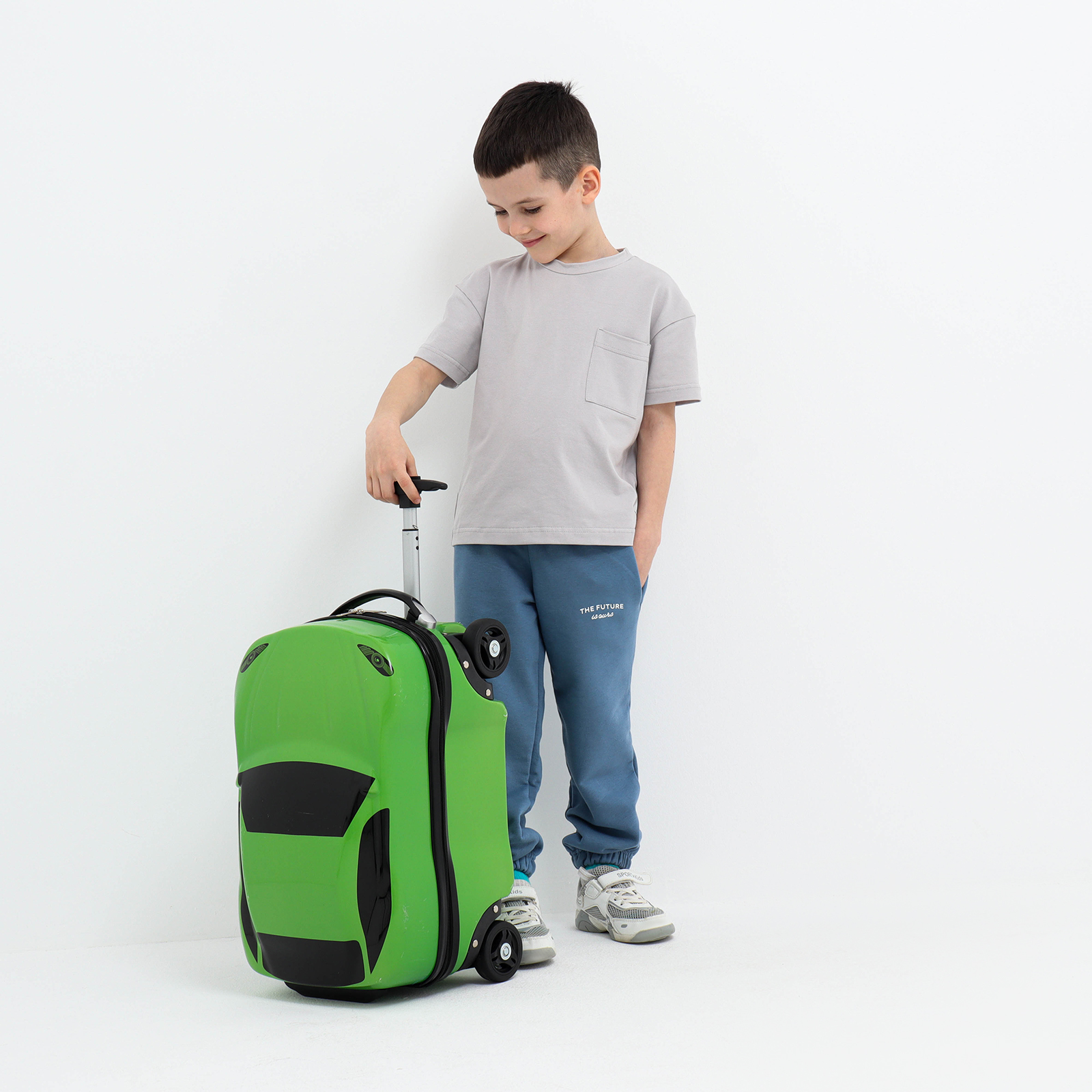 Чемодан малый 20" на молнии, 4 колеса, цвет зелёный