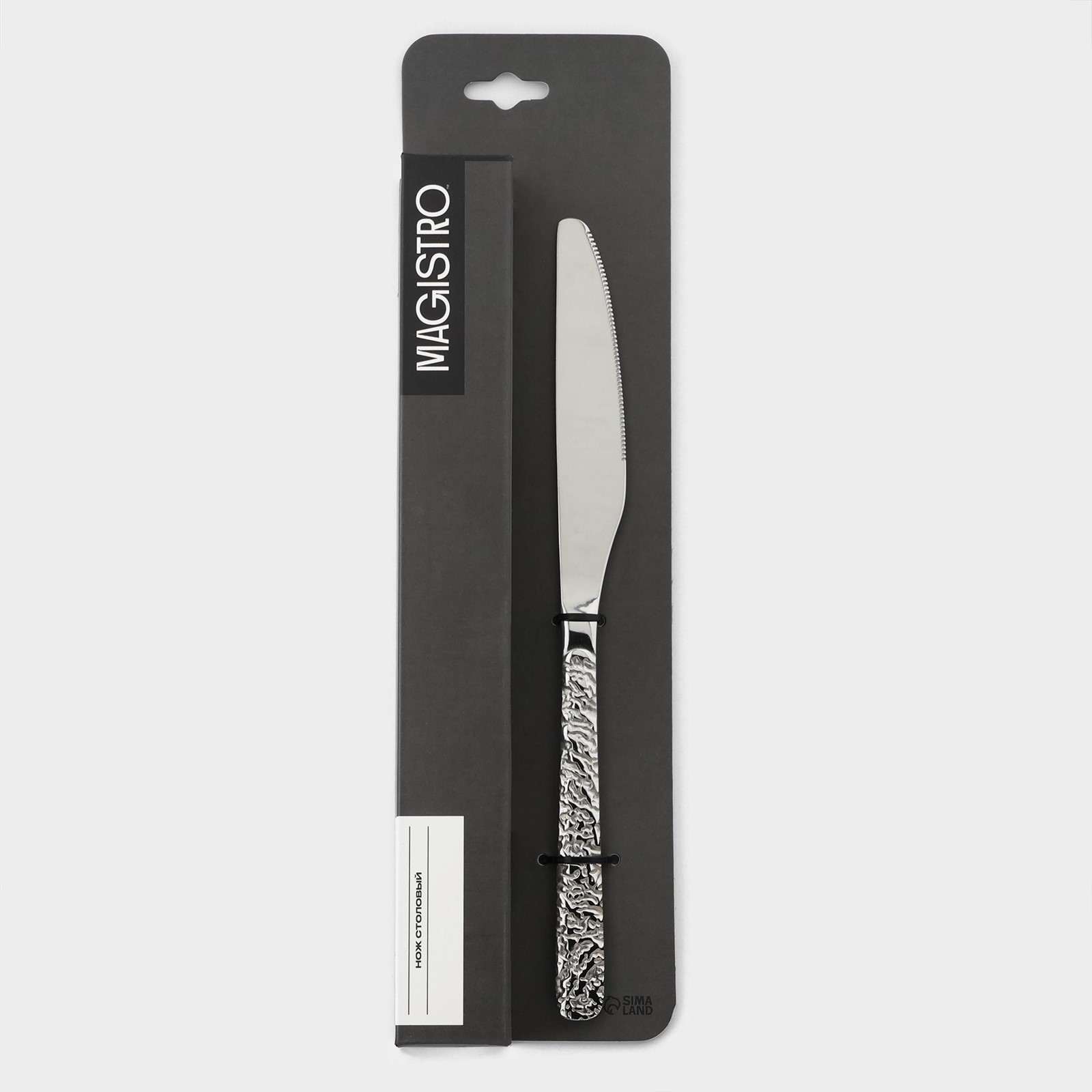 Набор ножей столовых из нержавеющей стали magistro «олин», длина 22,7 см, 6 шт. Преимущества товара:Прочность: ножи из нержавеющей стали прочнее, чем ножи из других материалов, таких как керамика или пластик. Они также устойчивы к коррозии и не ржавеют при контакте с водой или другими жидкостями. Долговечность: ножи из нержавеющей стали служат дольше, чем ножи из других материалов. Они не теряют своей остроты и не требуют частой заточки. Гигиеничность: ножи из нержавеющей стали не впитывают запахи и не передают их пище. Они также не подвержены воздействию бактерий и микробов, что делает их безопасными для использования. Легкость в уходе: ножи из нержавеющей стали легко моются и не требуют специального ухода. Их можно мыть в посудомоечной машине, но не рекомендуется использовать абразивные чистящие средства, так как они могут повредить поверхность ножа. Цвет: Серебристый Длина, см: 22.7 В наборе, шт.: 6 Материал ручки: Нержавеющая сталь Материал: Нержавеющая сталь Назначение: Столовые Можно мыть в посудомоечной машине: Да Цвет ручки: Серебристый Текстура: С рельефом Матовая поверхность: Нет Внешний вид: Без особенностей  развернуть описание ▼