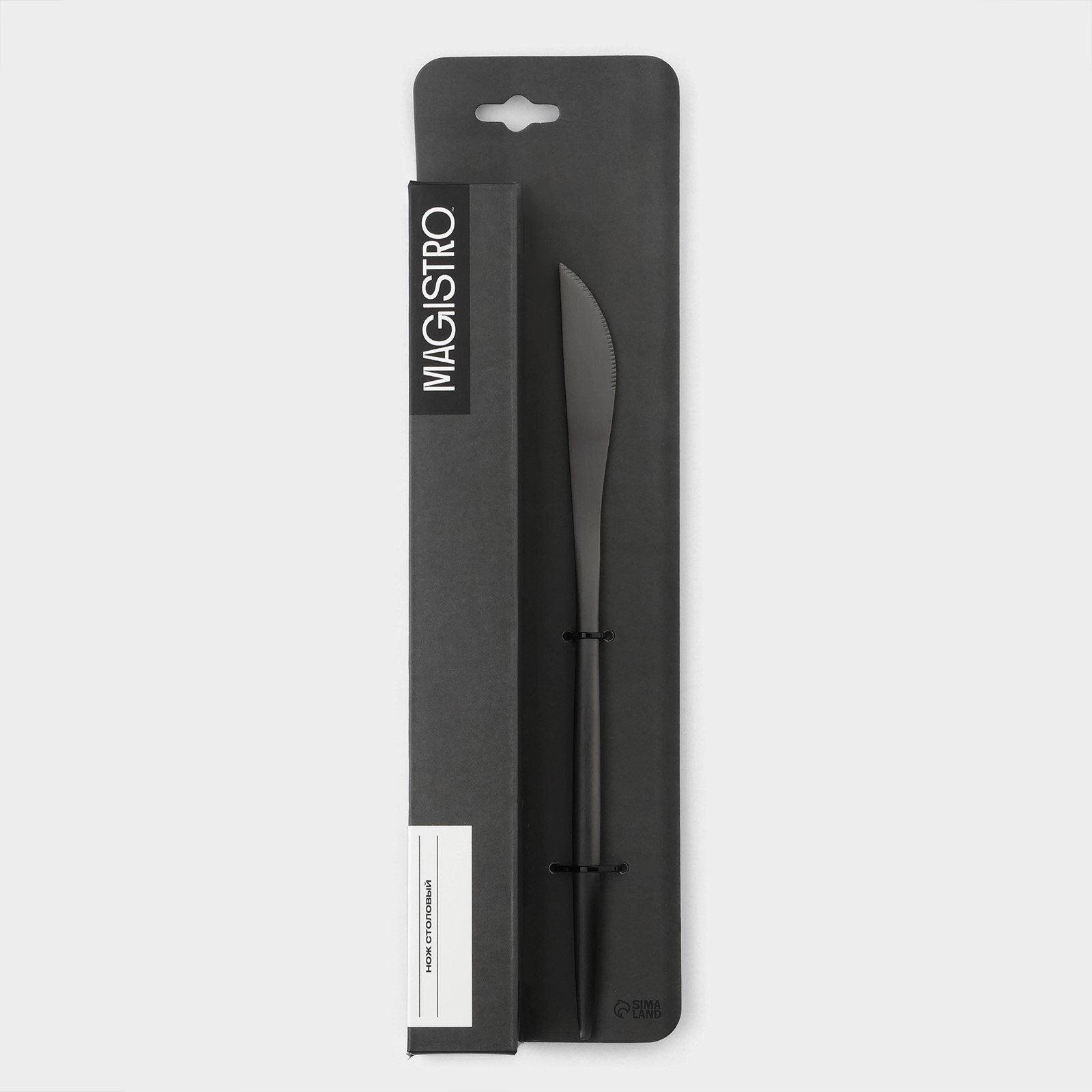 Набор ножей столовых из нержавеющей стали magistro «фолк», длина 22,5 см, 6 шт. Преимущества товара:Прочность: ножи из нержавеющей стали прочнее, чем ножи из других материалов, таких как керамика или пластик. Они также устойчивы к коррозии и не ржавеют при контакте с водой или другими жидкостями. Долговечность: ножи из нержавеющей стали служат дольше, чем ножи из других материалов. Они не теряют своей остроты и не требуют частой заточки. Гигиеничность: ножи из нержавеющей стали не впитывают запахи и не передают их пище. Они также не подвержены воздействию бактерий и микробов, что делает их безопасными для использования. Легкость в уходе: ножи из нержавеющей стали легко моются и не требуют специального ухода. Их можно мыть в посудомоечной машине, но не рекомендуется использовать абразивные чистящие средства, так как они могут повредить поверхность ножа. Цвет: Чёрный Длина, см: 22.5 В наборе, шт.: 6 Материал ручки: Нержавеющая сталь Материал: Нержавеющая сталь Назначение: Столовые Можно мыть в посудомоечной машине: Да Цвет ручки: Чёрный Текстура: Гладкая Матовая поверхность: Да Внешний вид: Без особенностей  развернуть описание ▼
