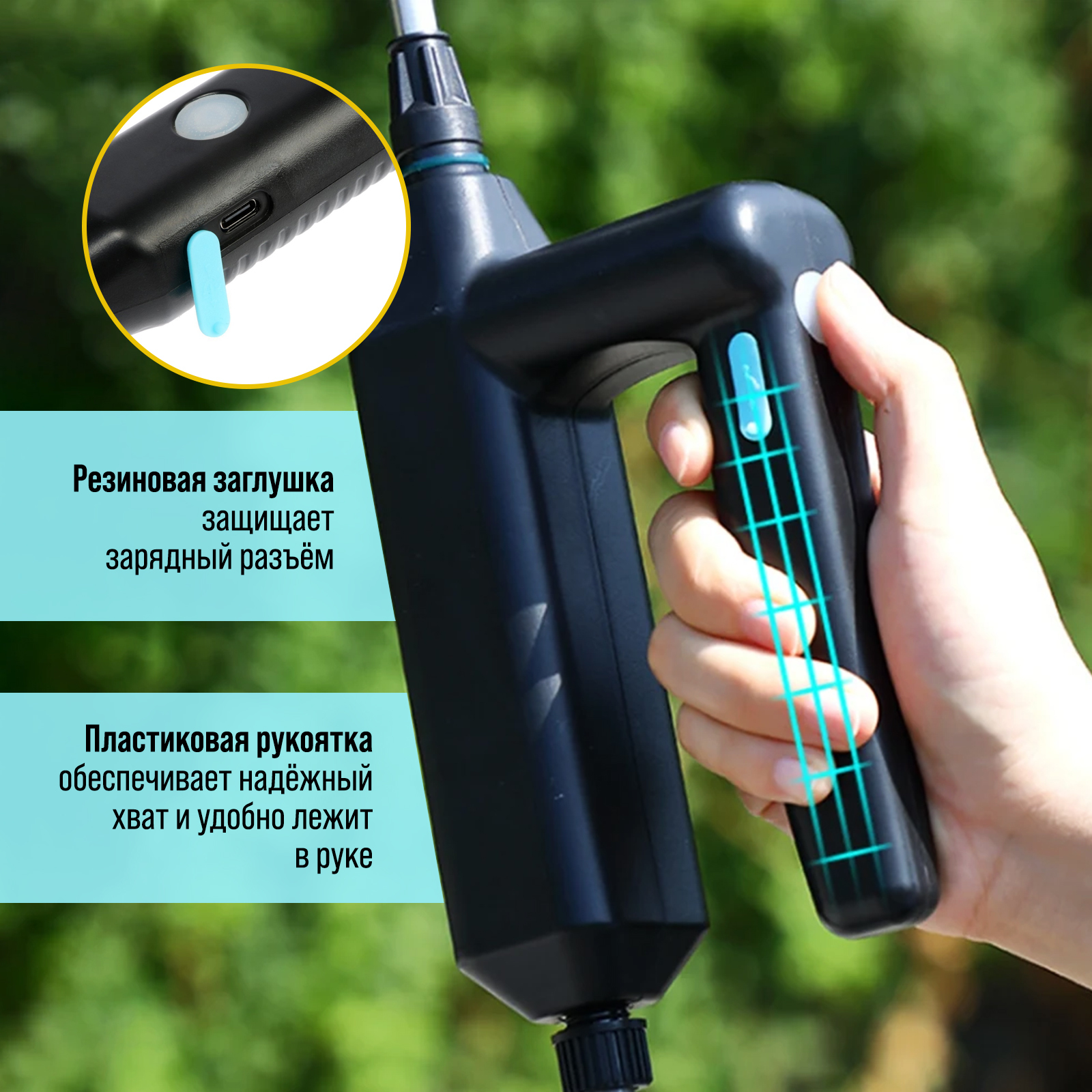 Опрыскиватель аккумуляторный тундра, 7.4 в, 2.4 ач, Li-on, 0.8 л/мин, 2 насадки, шланг 5 м