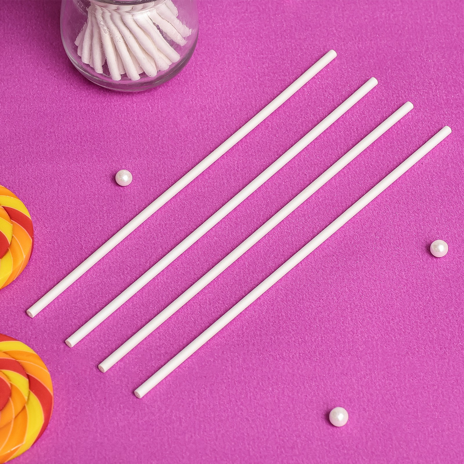Array.   Бумажные палочки - универсальный инструмент для кондитеров, созданный из бумаги с прочной структурой, способной удовлетворить потребности в творчестве.  Преимущества: Безопасность и отсутствие запаха: бумажные палочки абсолютно безопасны, не обладают посторонними запахами и легки в использовании. Универсальное применение: эти палочки идеально подходят для создания леденцов, канапе, кейк-попсов, карамели, конфет, безе, зефира, топперов из шоколада и других десертов. Экологическая чистота: в отличие от пластиковых аналогов, бумажные палочки изготовлены из натурального, экологически чистого материала - бумаги. Они не загрязняют окружающую среду и не причиняют вред природе, делая их ответственным выбором для тех, кто ценит экологию. Выберите бумажные палочки для безопасного, удобного и экологически чистого опыта кондитерского творчества! Цвет: Белый В наборе, шт.: 50 Материал: Бумага  развернуть описание ▼