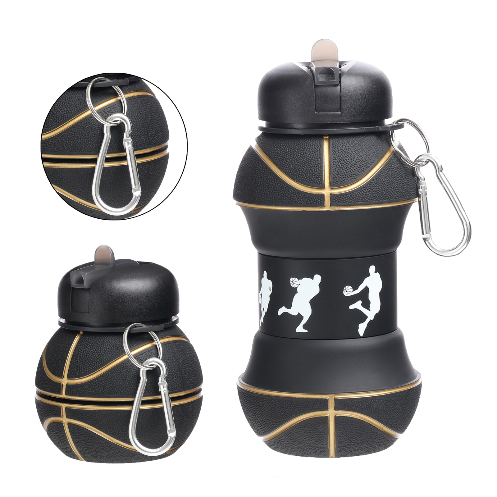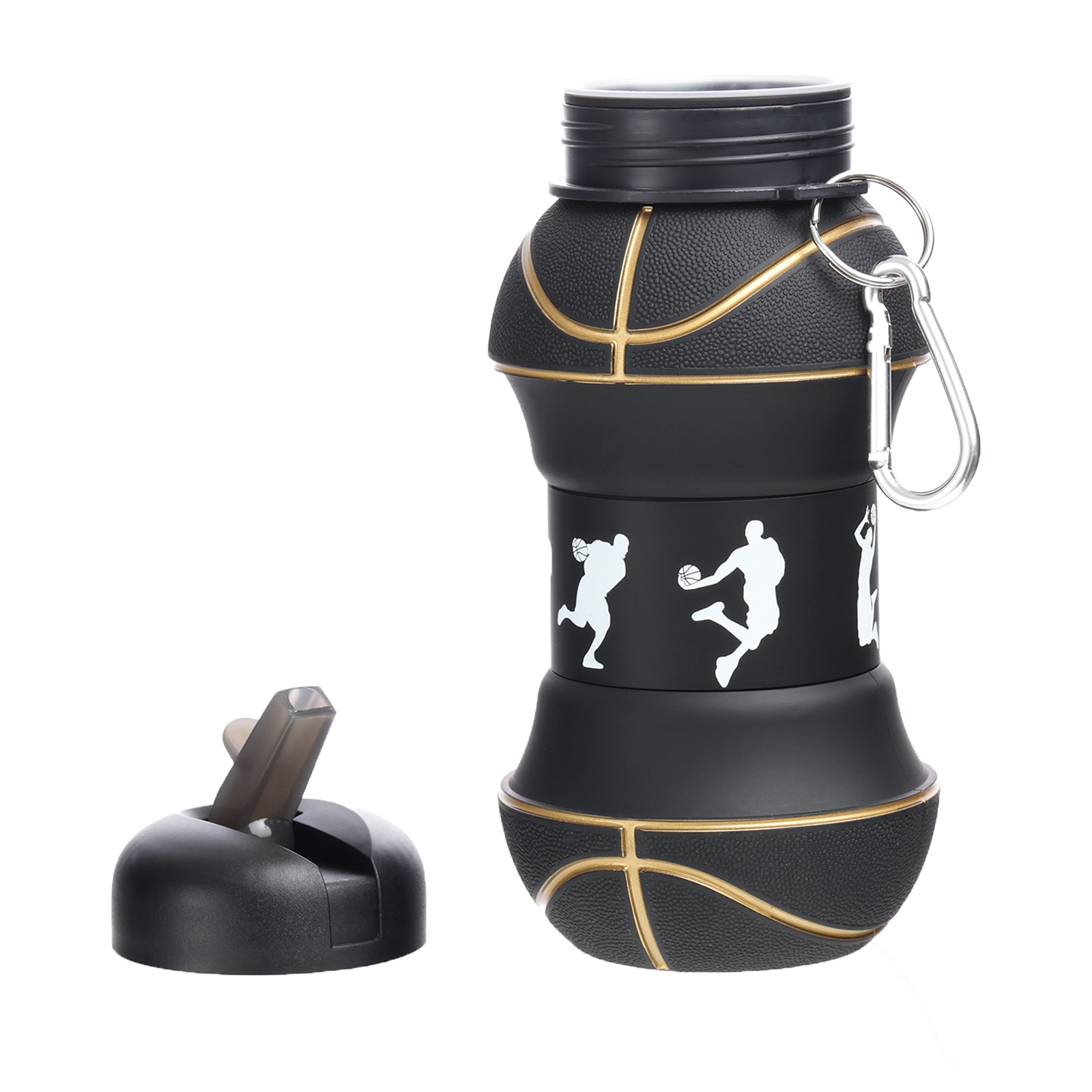 Бутылка для воды, 550 мл, "баскетбольный мяч", складная, черная, 18 х 8.7 см