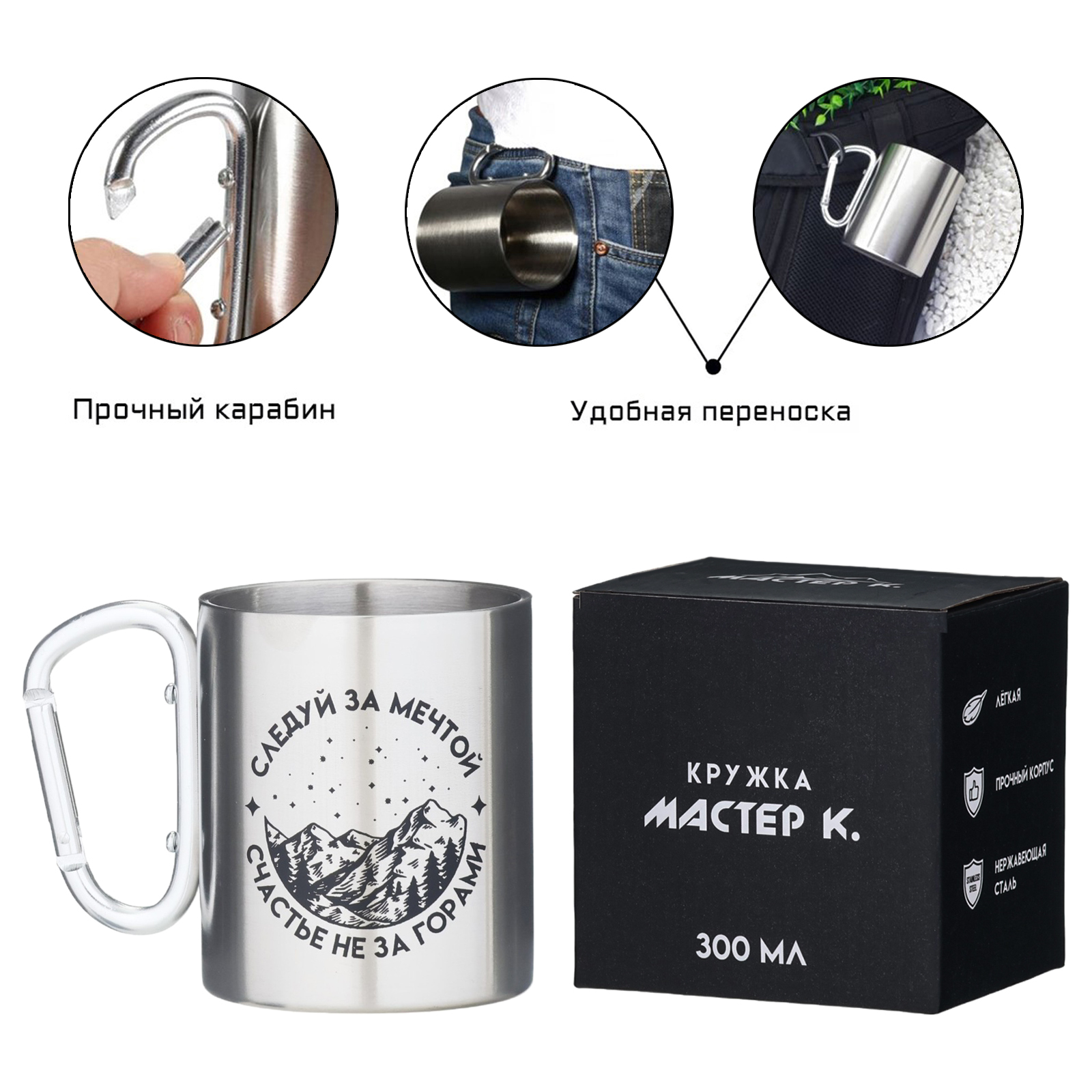Термокружка, 300 мл, карабин "счастье не за горами"