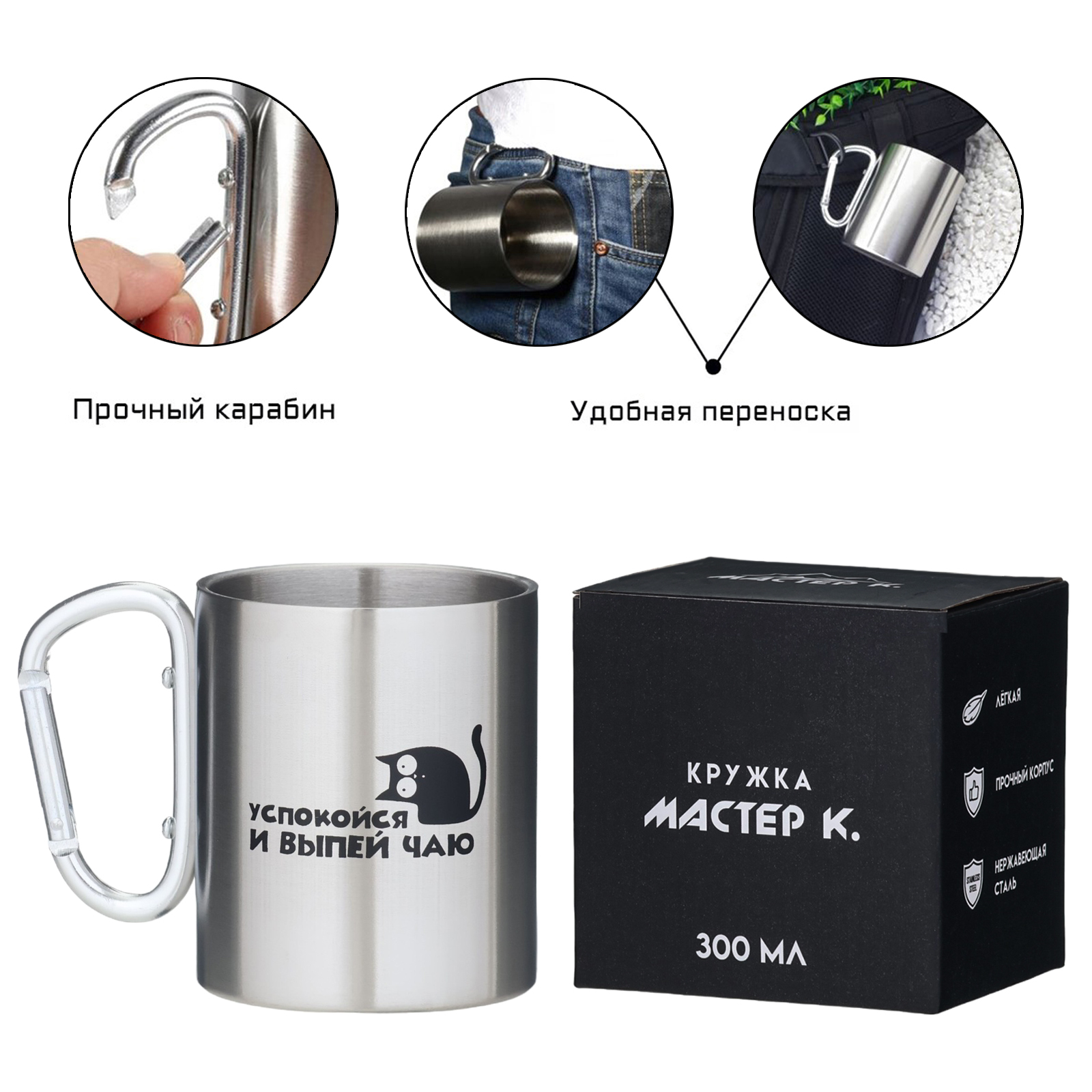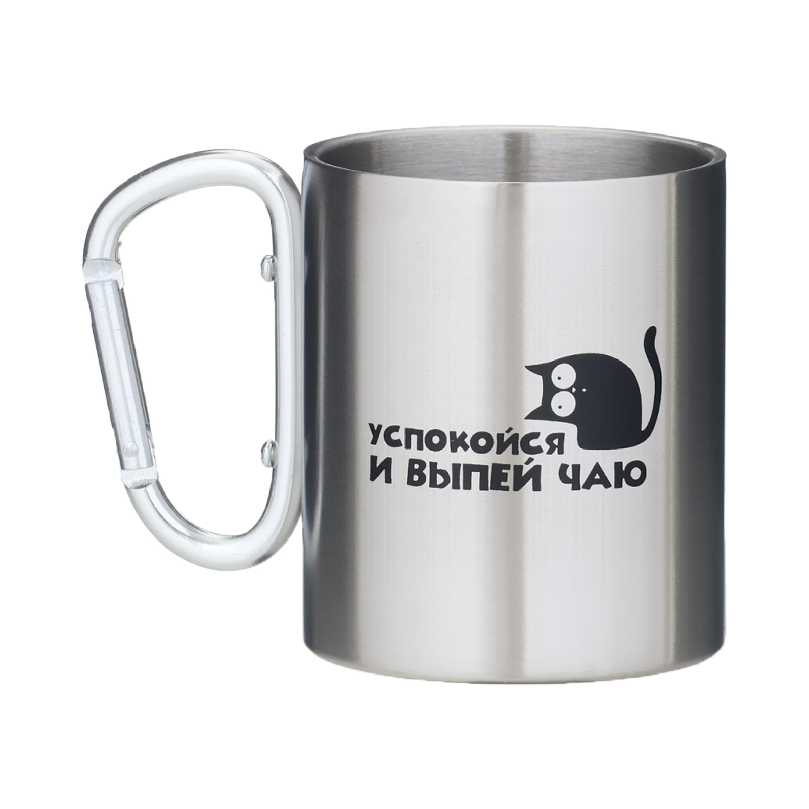 Термокружка, 300 мл, карабин "успокойся и выпей чаю"