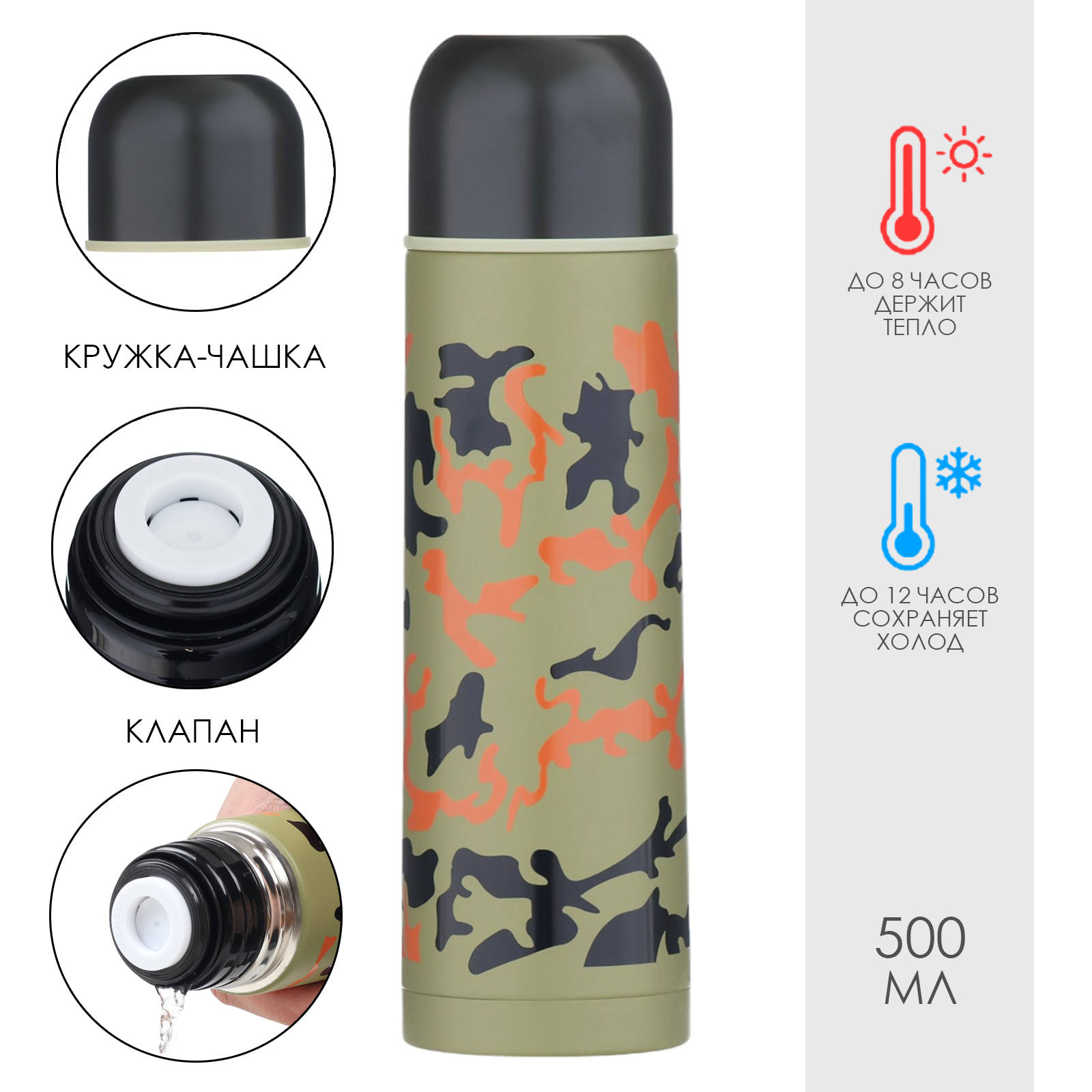 Термос, 500 мл, гильза камуфляж "мастер к", с кружкой, сохраняет тепло до 8 ч