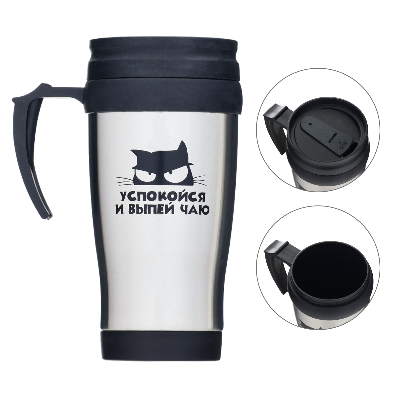 Термокружка, 350 мл, Classic "успокойся и выпей чаю", сохраняет тепло до 2 ч