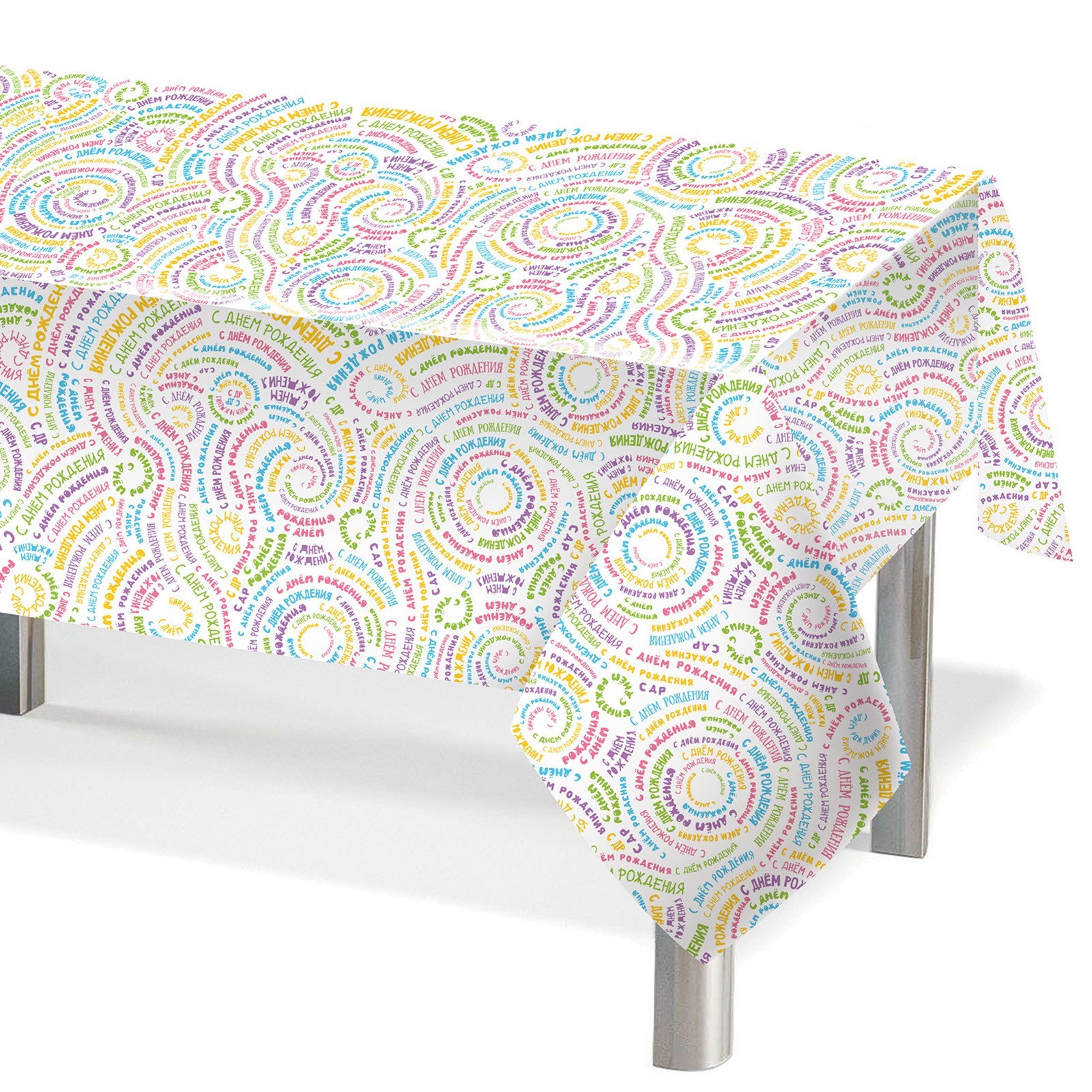 Скатерть одноразовая «с днём рождения», разноцветный, 120 X 180 см