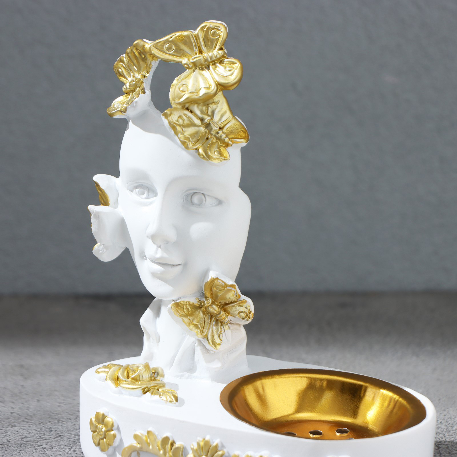 Курильница для благовоний конусов, порошковых и палочек take it easy «лицо», белая. Материал:Полистоун|Тип благовоний:Спирали|Тип благовоний:Палочки|Страна:Китай