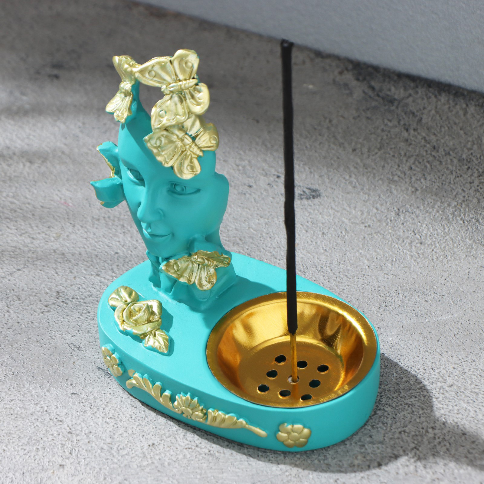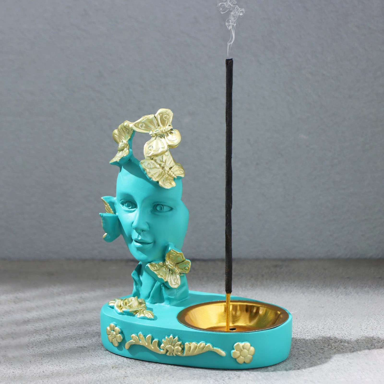 Курильница для благовоний конусов, порошковых и палочек take it easy «лицо», бирюзовая. Материал:Полистоун|Тип благовоний:Палочки|Тип благовоний:Спирали|Страна:Китай