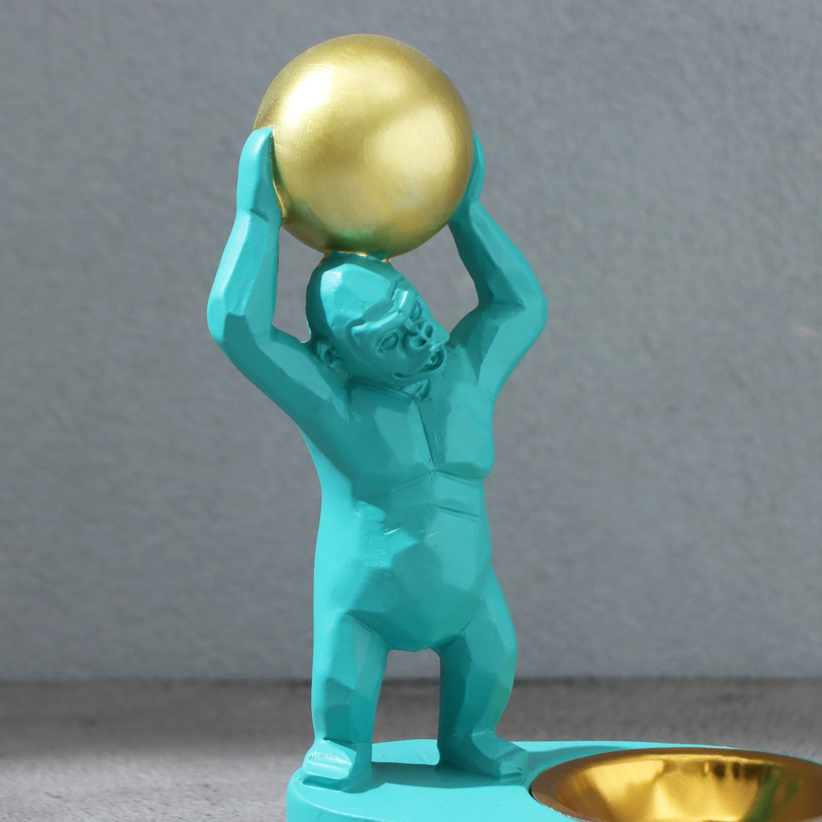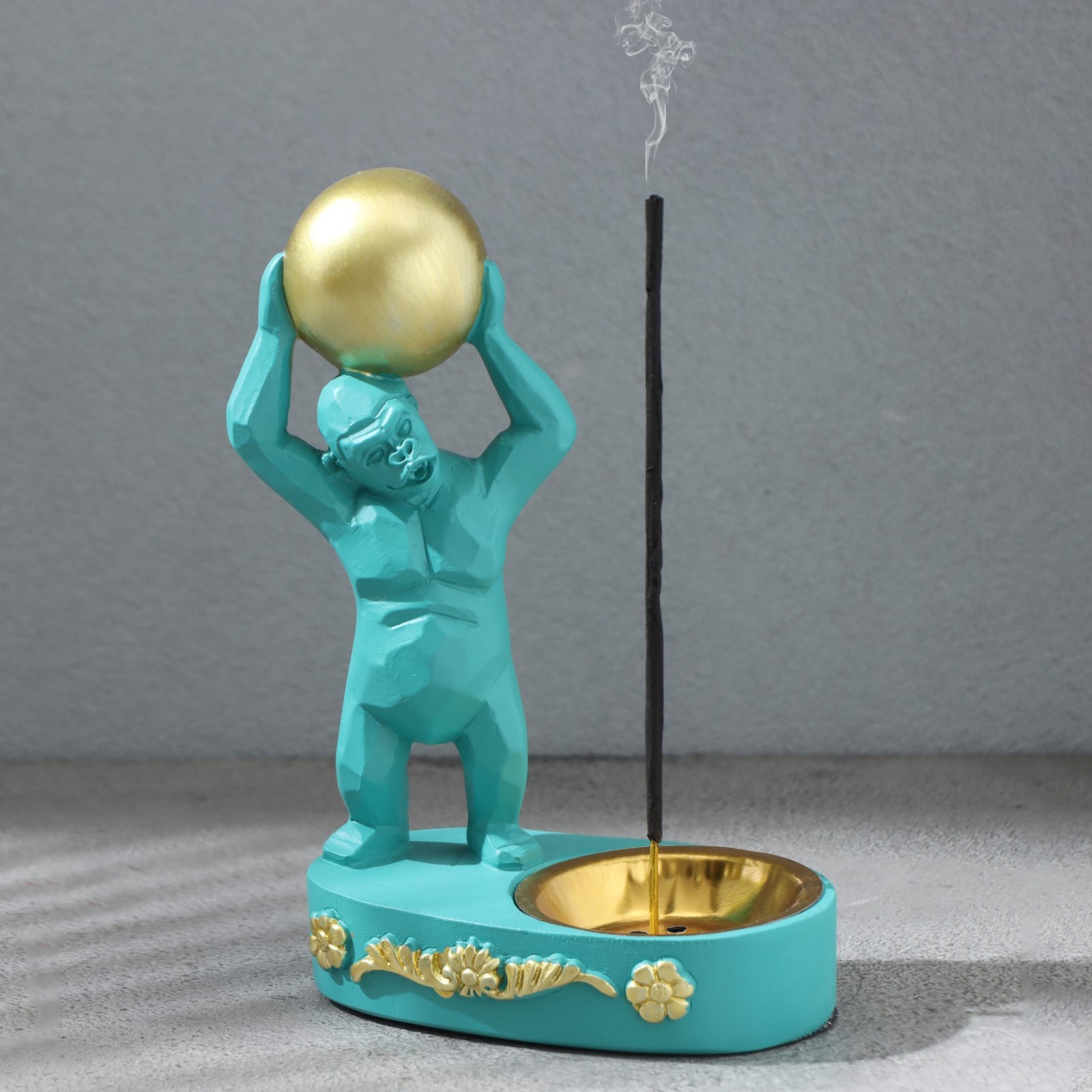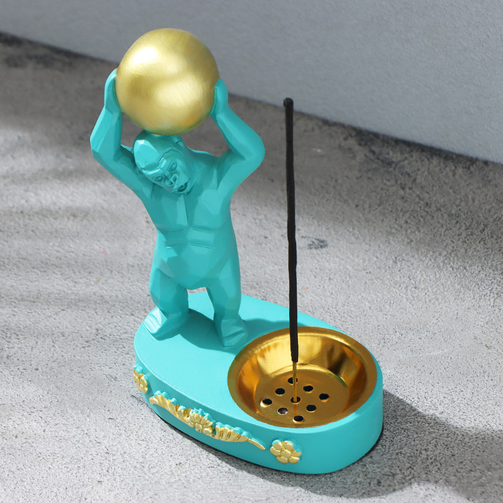 Курильница для благовоний конусов, порошковых и палочек Take It Easy «обезьяна с шаром стоящая», бирюзовая