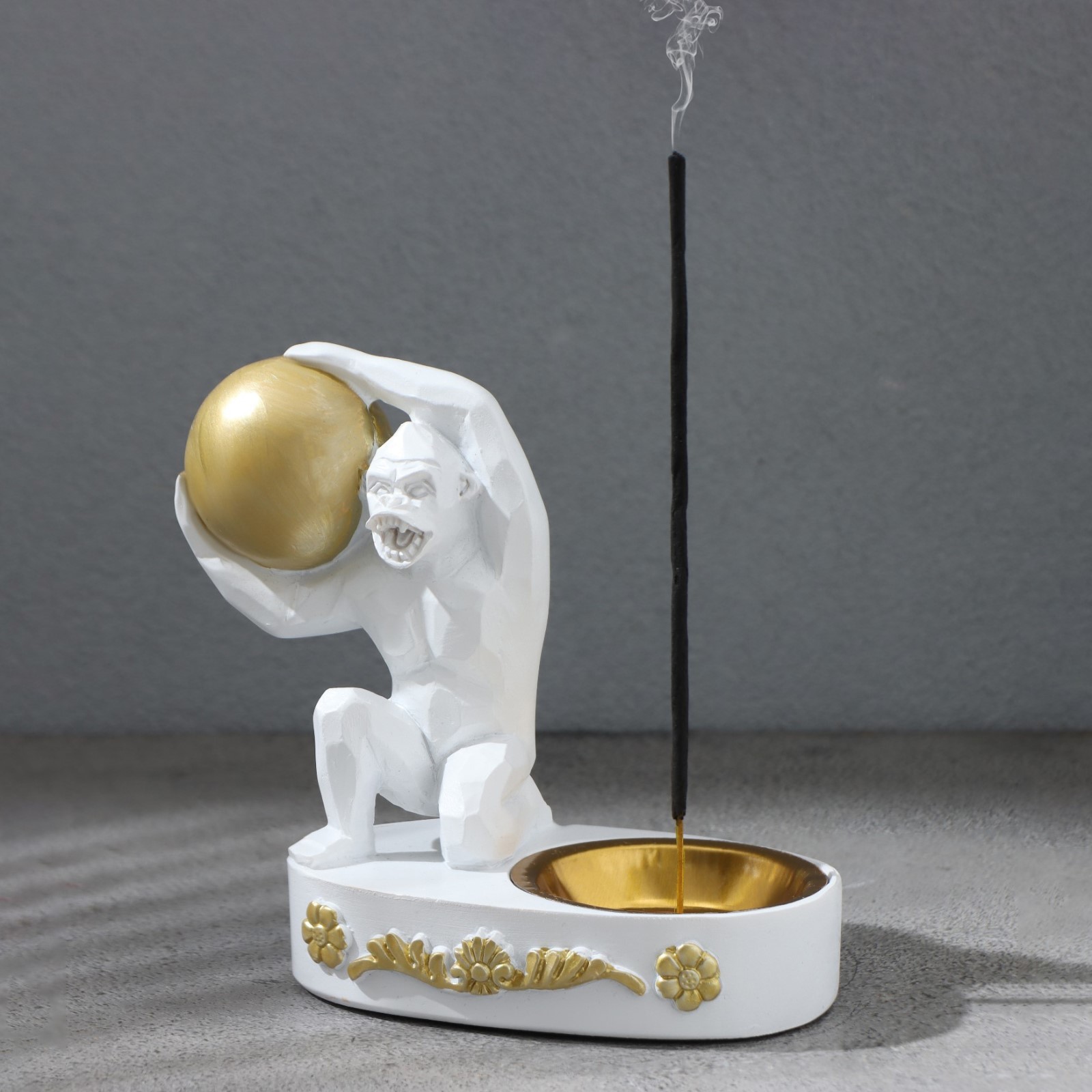 Курильница для благовоний конусов, порошковых и палочек take it easy «обезьяна с шаром стоящая», белая. Материал:Полистоун|Тип благовоний:Палочки|Тип благовоний:Спирали|Страна:Китай
