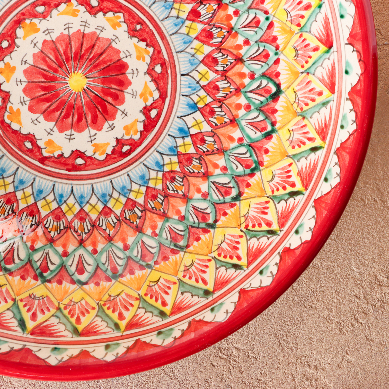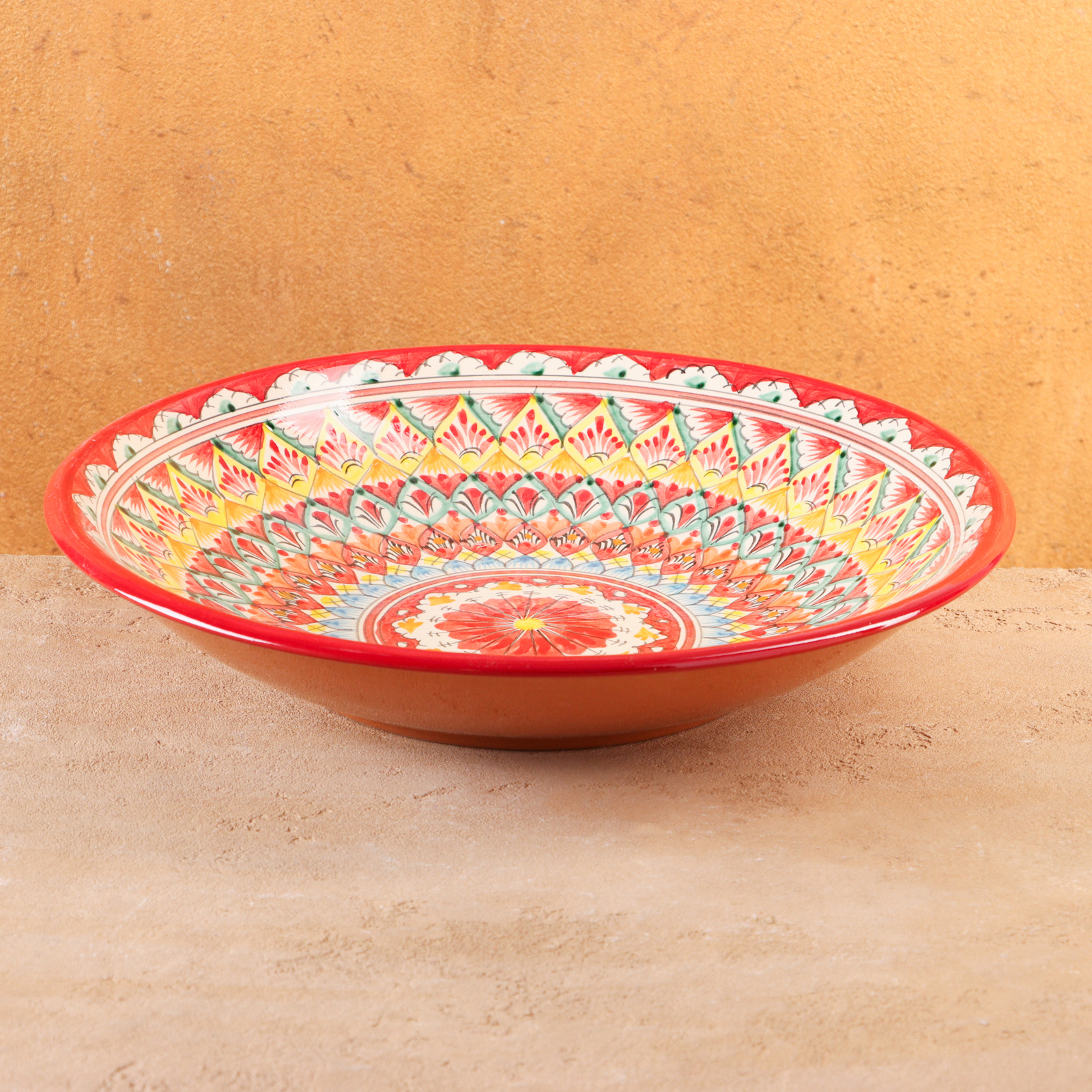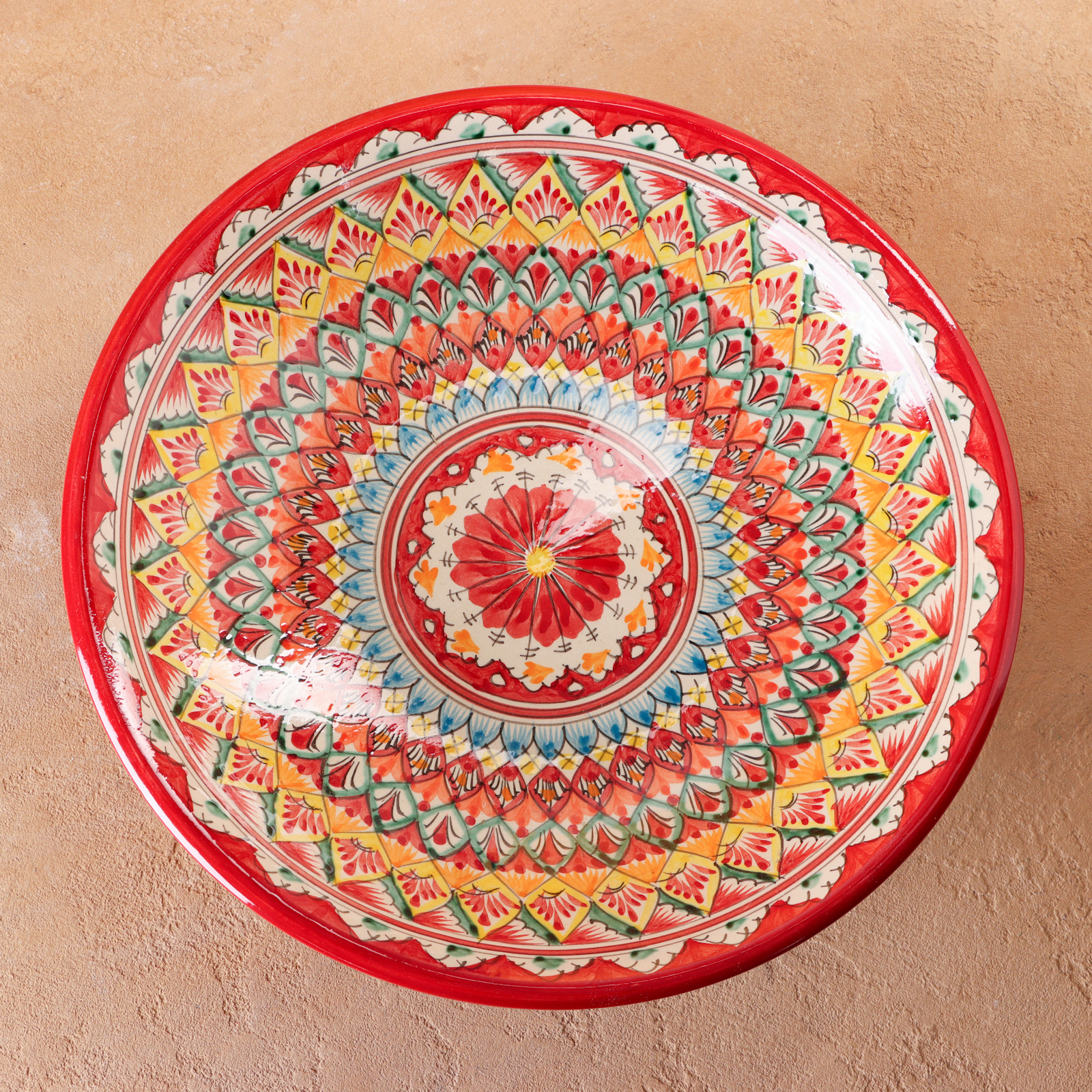 Ляган риштанская керамика "цветы", 33 см, красный