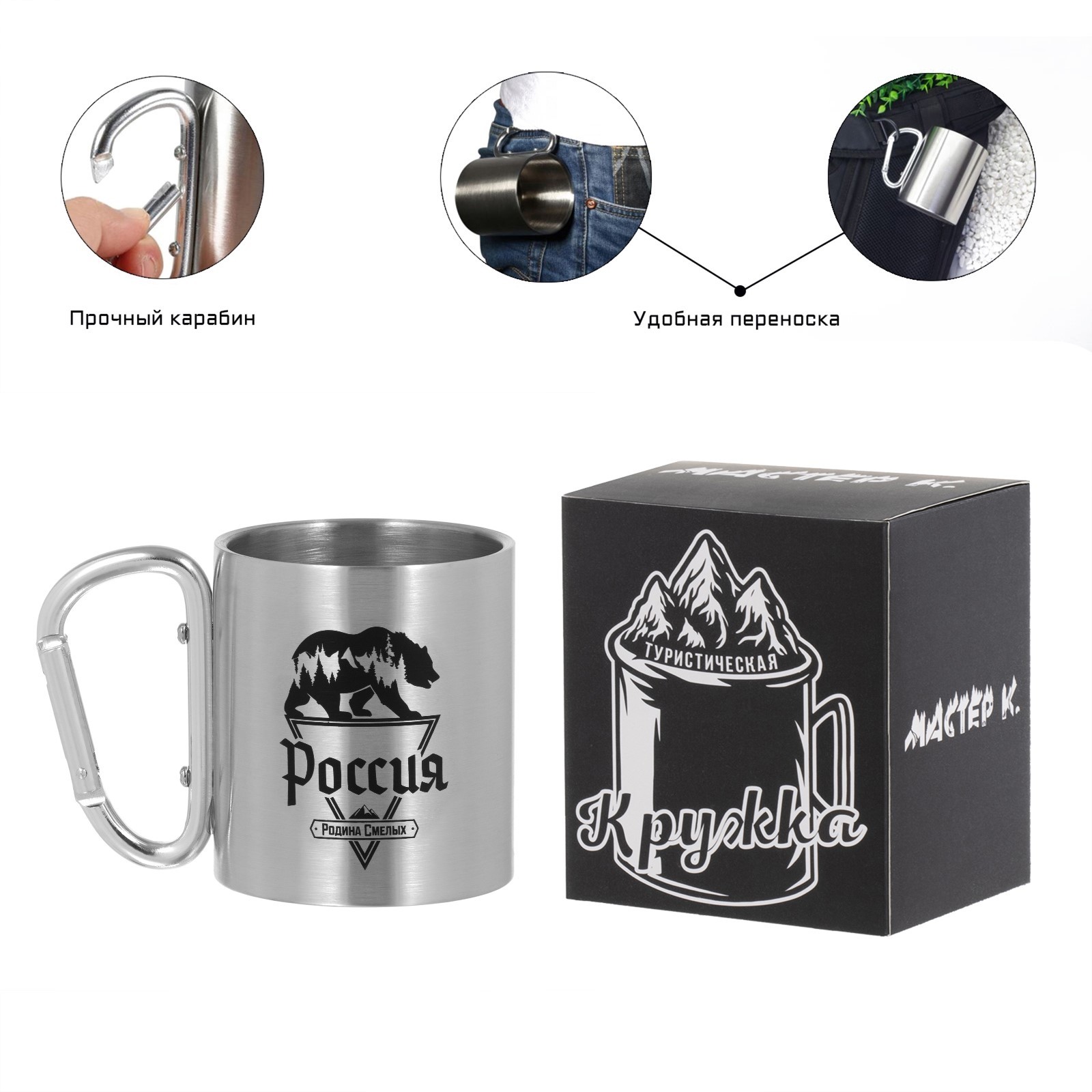 Термокружка, 180 мл, карабин "россия - родина смелых", 7.5 х 10.5 см