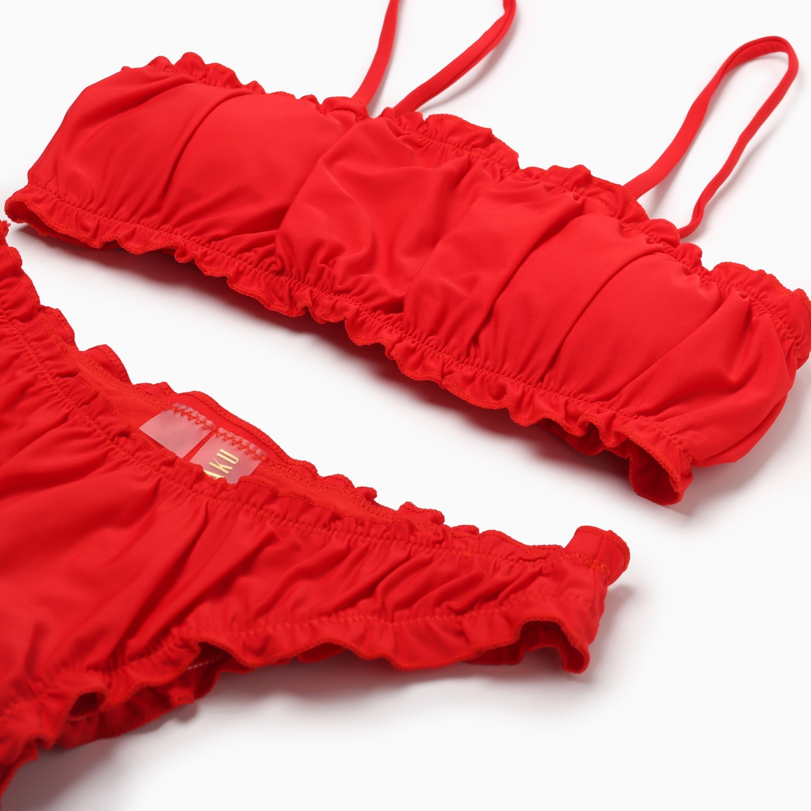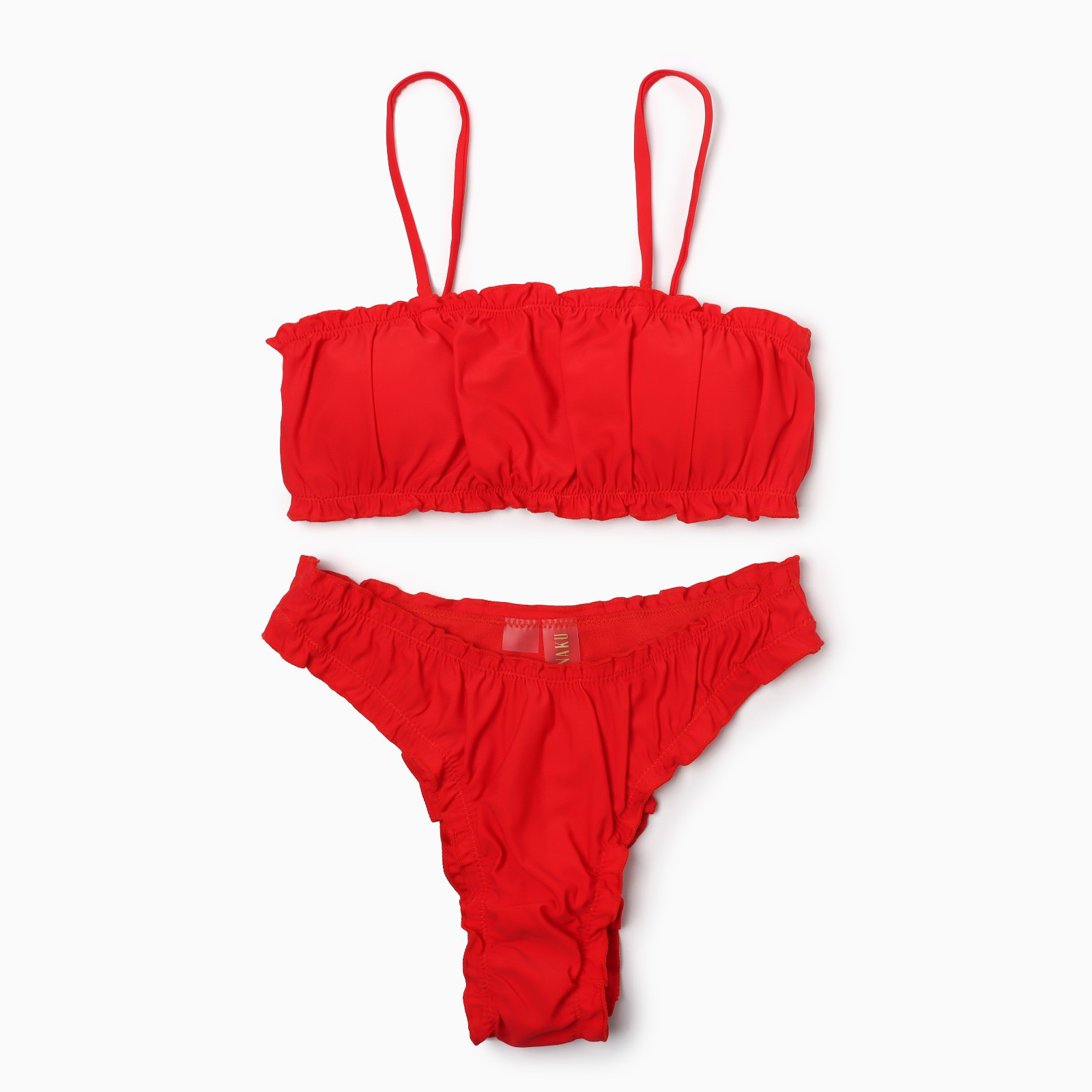 Купальник женский раздельный minaku цвет красный, размер 44. Вид: Купальник Цвет: Красный Для кого: Для женщины Назначение: Пляж Размер: 44 Сезон: Всесезонный Сезон: Лето Тематика: Однотонная Тип купальника: Раздельный Размер чашки: B Размер чашки: A Рекомендации по уходу: Деликатный режим отжима Рекомендации по уходу: Деликатная стирка при 30 °С Рекомендации по уходу: Не отбеливать Состав ткани: Нейлон Состав ткани: Эластан Сезон: Лето Особенность верха: Бандо Особенность низа: Танга  развернуть описание ▼