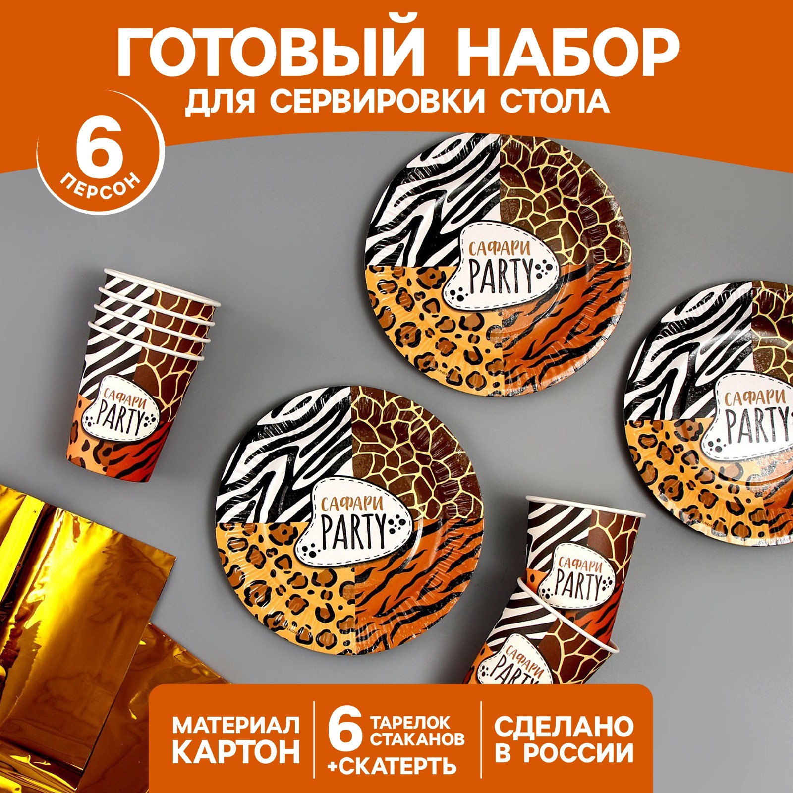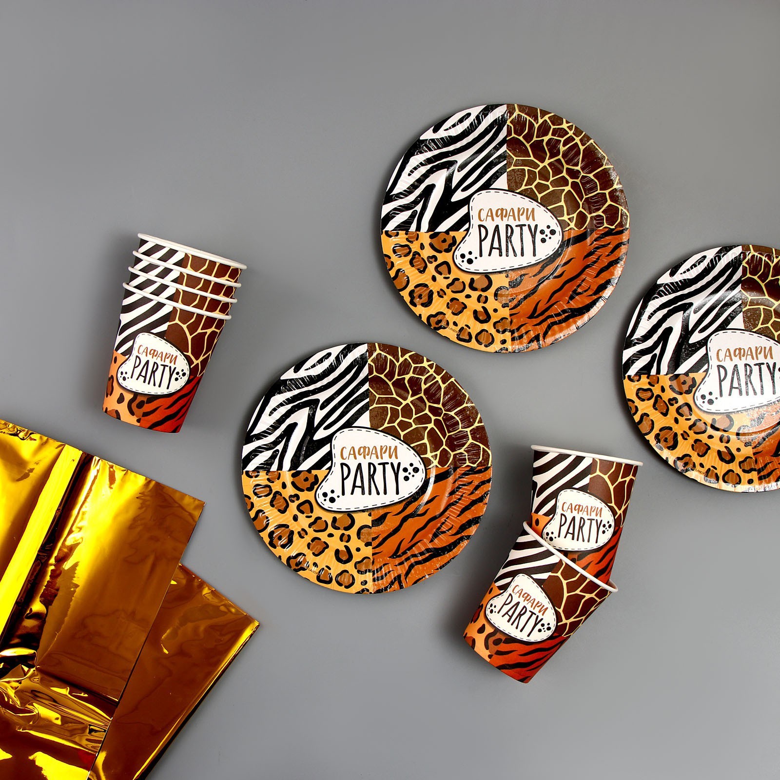Набор бумажной посуды одноразовый сафари Party! природа»: 6 тарелок, 6 стаканов, скатерть