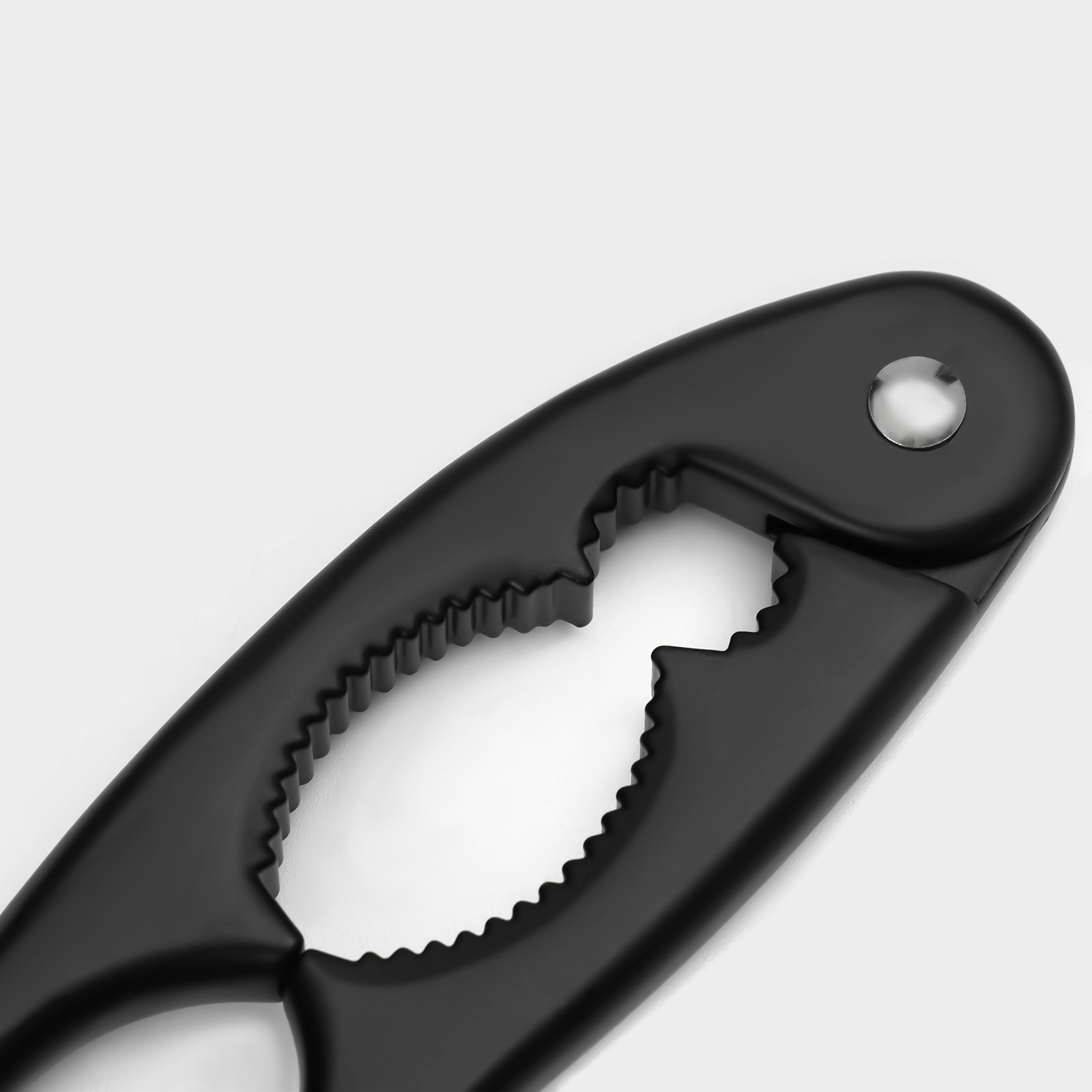 Орехокол magistro vantablack, 17,3x2 см, цвет чёрный. Ручной орехокол — универсальное устройство для раскалывания скорлупы с сохранением целостности ядра. Может использоваться для всех видов грецкого ореха, фундука, миндаля и т. д. Пользоваться изделием очень легко — нужно просто положить орех в один из пазов и сжать рукояти. Материал: Пластик Материал: Коррозионно-стойкая сталь  развернуть описание ▼