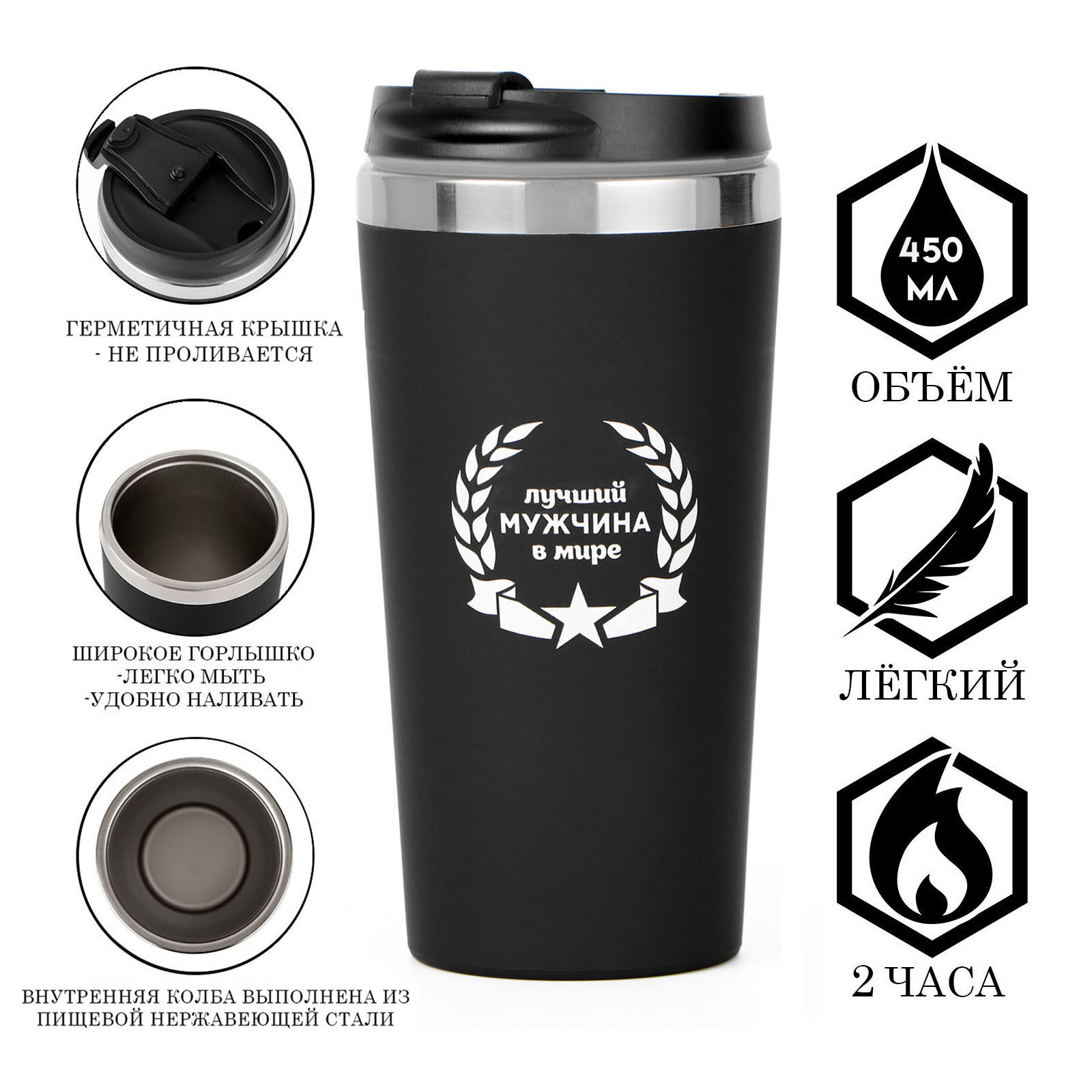 Термокружка, 450 мл, For You "лучший мужчина в мире", сохраняет тепло до 2 ч
