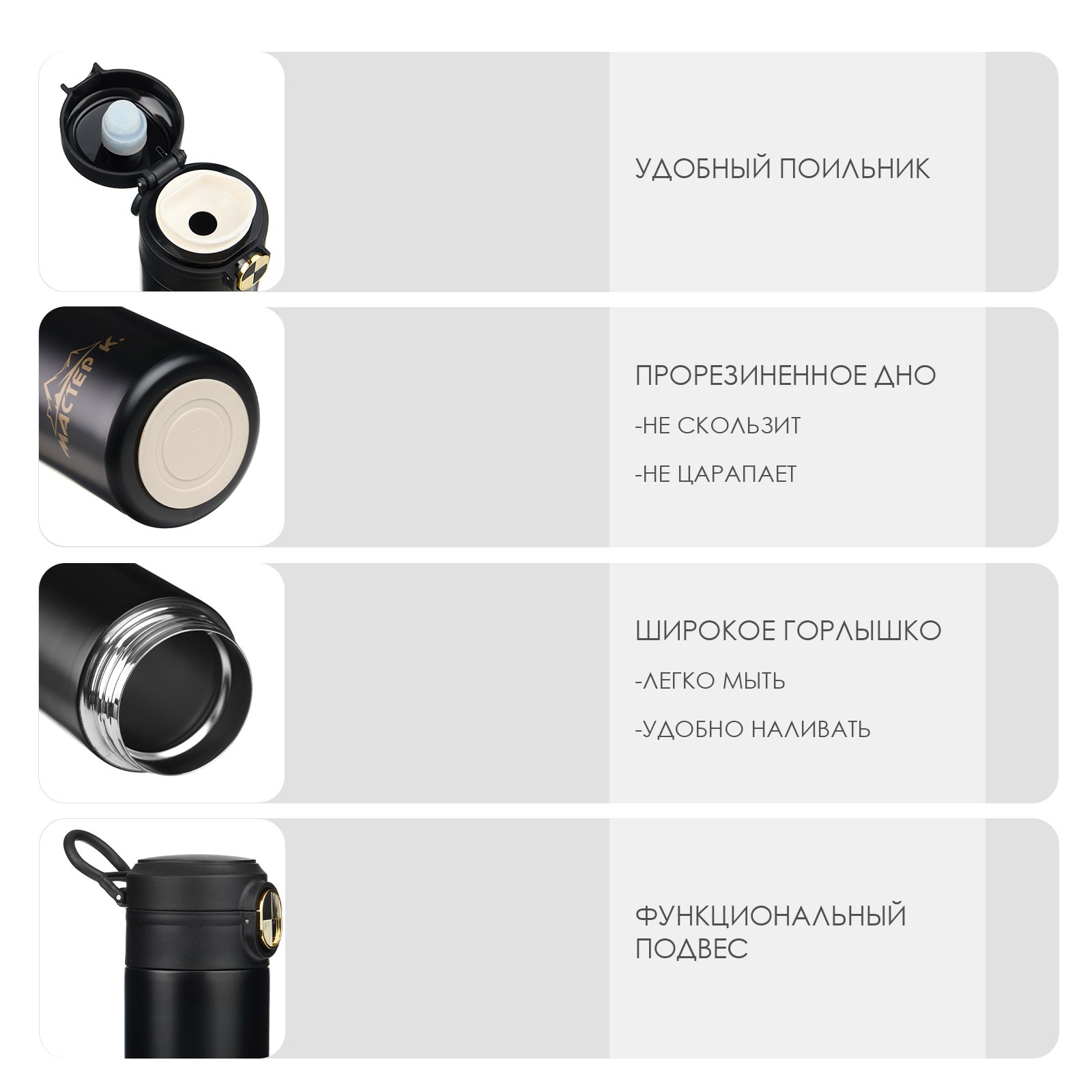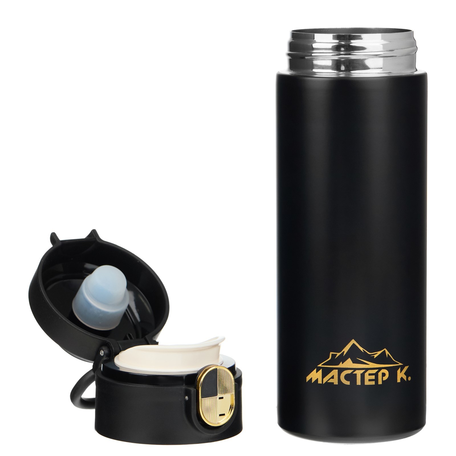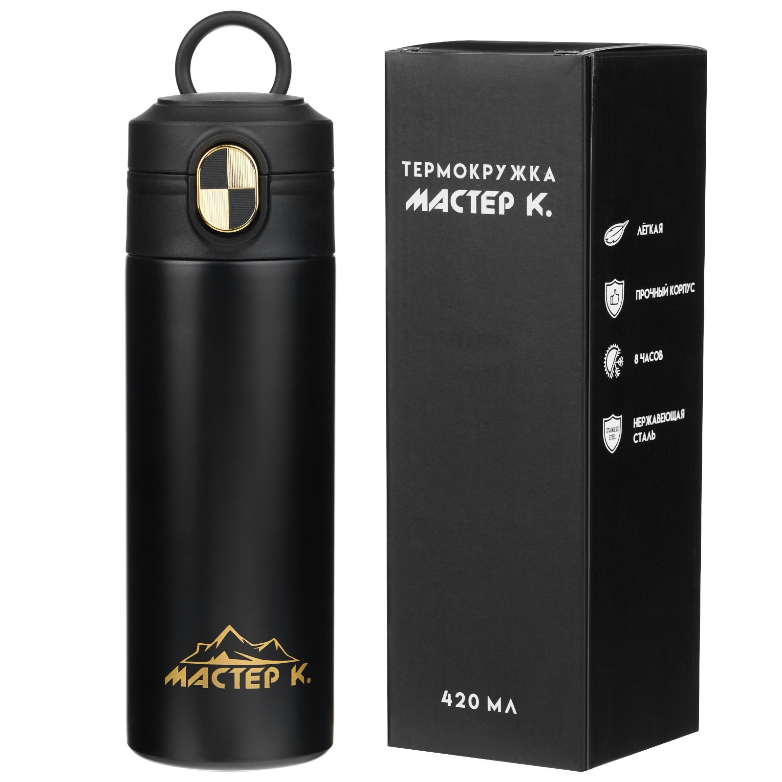 Термокружка, 420 мл, simple "мастер к", сохраняет тепло до 8 ч, черная. Термокружка для кофе и чая "Мастер К" идеальна для офиса, автомобиля, длительных прогулок и детям в школу. Благодаря специальному покрытию надежно лежит в руке.
