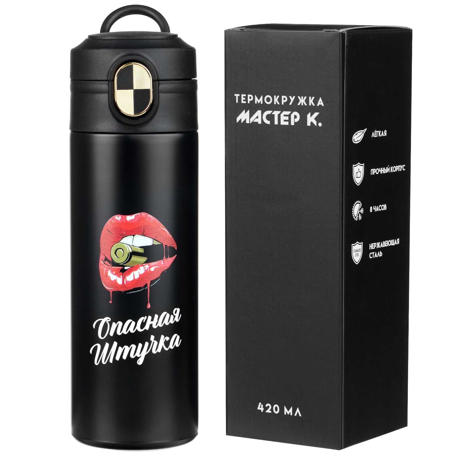 Термокружка, 420 мл, simple "опасная штучка", сохраняет тепло до 8 ч. Термокружка для кофе и чая "Опасная штучка" идеальна для офиса, автомобиля, длительных прогулок и детям в школу. Благодаря специальному покрытию надежно лежит в руке. Термокружка - это стильный аксессуар и отличный подарок на новый год, другу, подруге, брату, сестре, девушке, папе, маме, мужу, жене, бабушке и дедушке на день рождения, 23 февраля, 8 марта, 14 февраля. Термокружка сделана из нержавеющей стали марки 304, сконструирована по вакуумной технологии, с двойной стенкой, следовательно, долго держит тепло и не проливается. Оснащена откидывающейся крышкой, изготовленной из экологичного пищевого пластика. На дне термокружка имеет специальную прорезиненную основу, предотвращающую царапины на поверхностях. Особенности: Можно открывать и закрывать одной рукойУдобное горлышко (поильник)Нескользящее дноСтавится в автомобильный подстаканникОткрывается с помощью нажатия100% защита от протеканияСтильный дизайн, приятна на ощупьСохраняет тепло или холод до 8 часовДвойные стенки из нержавеющей сталиПеред первым применением обдайте внутреннюю колбу кипятком. После того, как нальёте горячий напиток, через несколько секунд откройте кружку, выпустите пар и снова закройте. Так напиток дольше сохранит температуру. Нельзя мыть в посудомоечной машине и нагревать в микроволновой печи. Цвет: Чёрный Объём, л: 0.42 Время сохранения тепла/холода, ч: 8 Объём, мл: 420 tnved: 7323930000 Крышка: Нет Материал: Пластик Особенности: С кнопкой  развернуть описание ▼