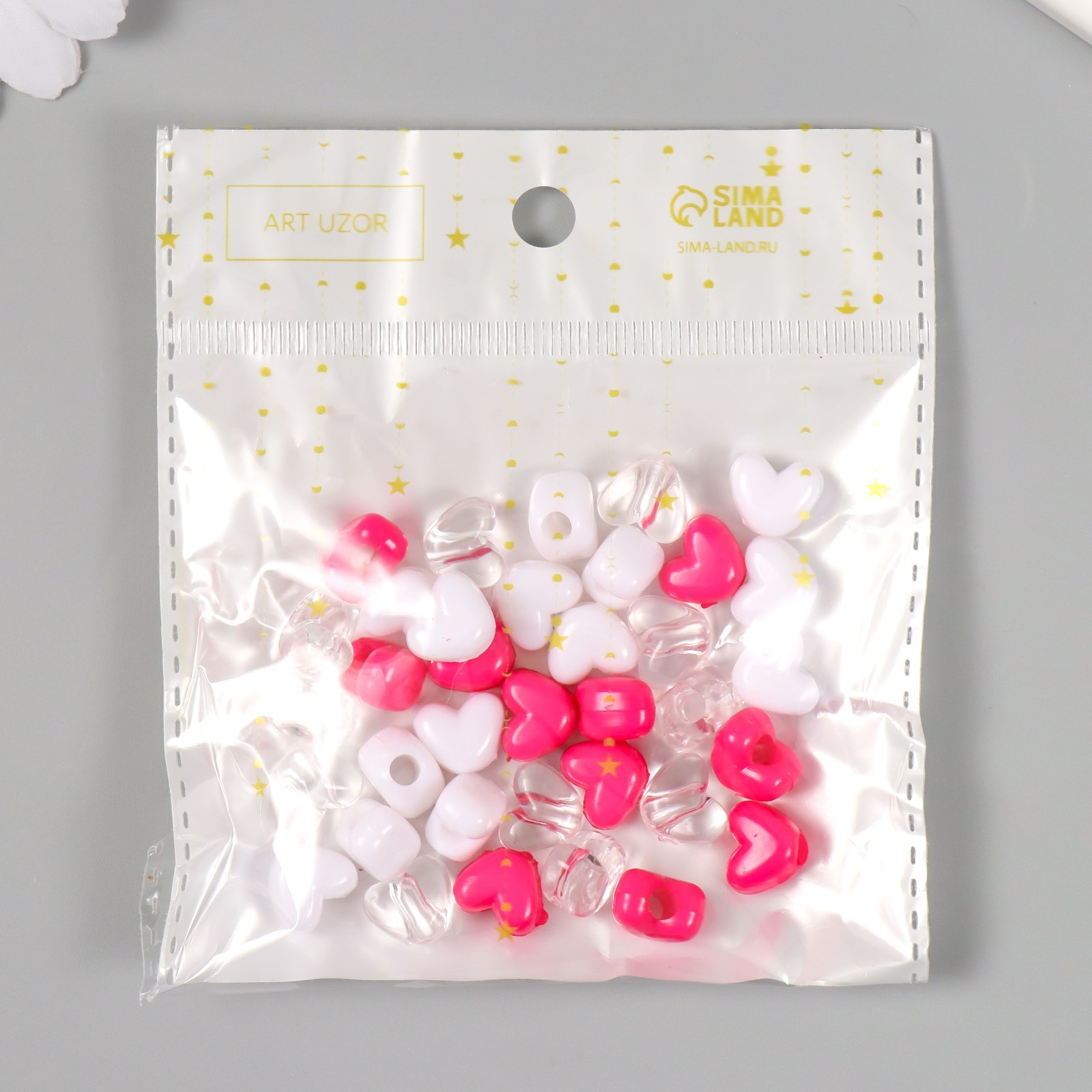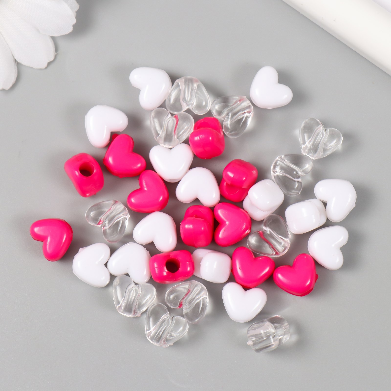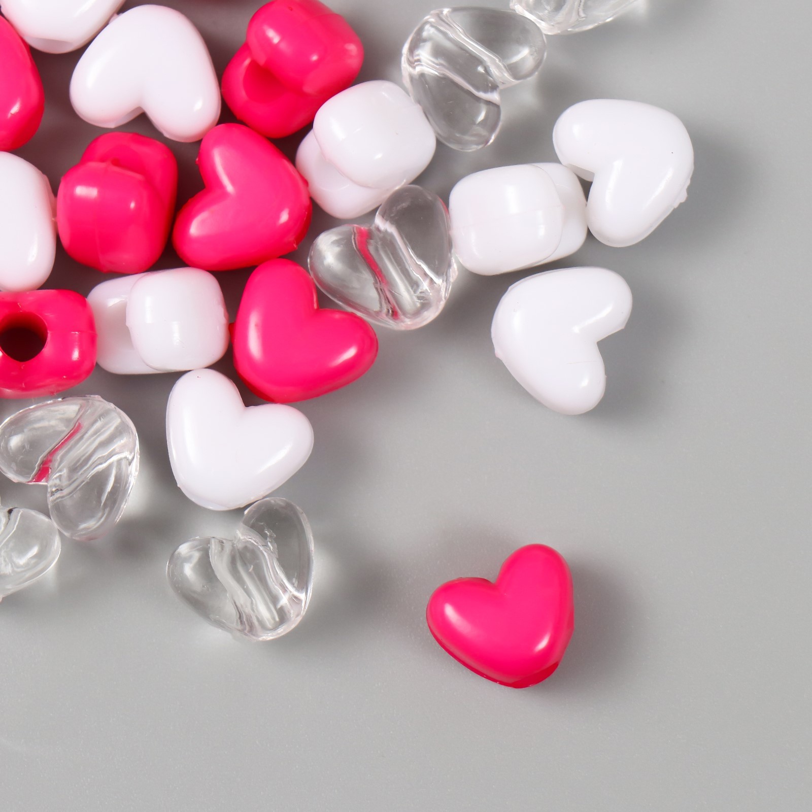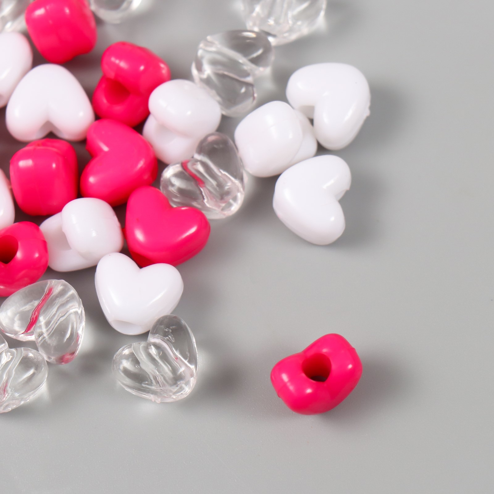 Набор бусин для рукоделия и плетения «арт узор. сердце. ярко-розовый, белый, прозрачный», 20 г, пластик, 1.2 0.9 0.8 см