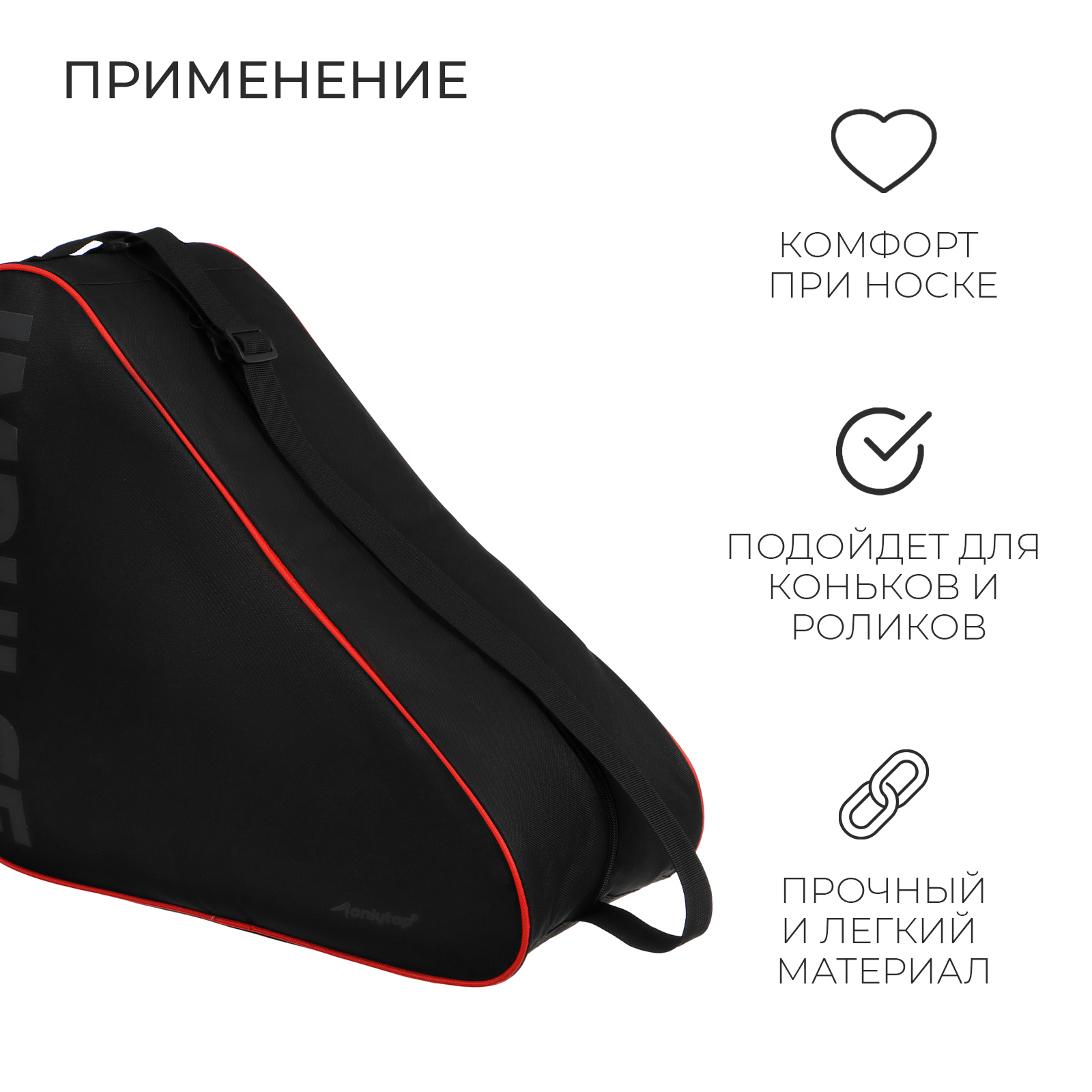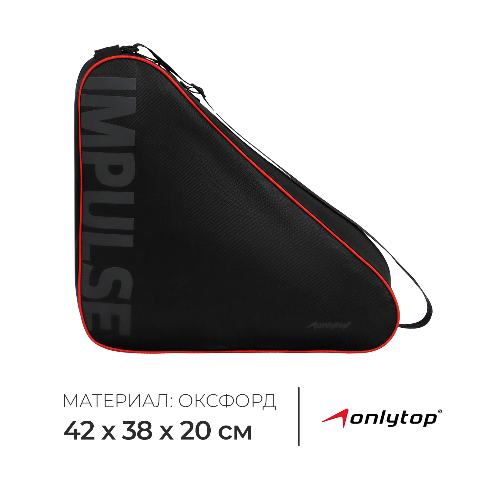 Сумка для коньков и роликов onlytop impulse, 42х38х20 см. Сумка предназначена для хранения и транспортировки коньков или роликов. Внутрь можно положить сопутствующее снаряжение: чехлы на лезвия и защиту. Сумка имеет регулируемый плечевой ремень и ручку для переноски. Цвет: Чёрный  развернуть описание ▼