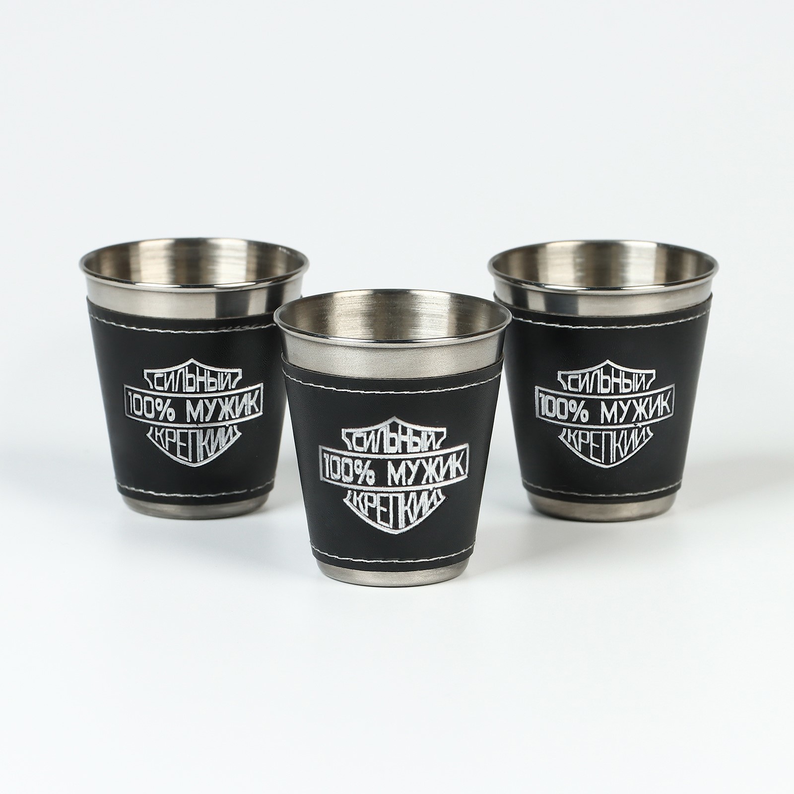 Стопки, 23 февраля "100% мужик", набор 3 шт по 70 мл. Набор стопок из 3 штук по 70 мл из пищевой нержавеющей стали в компактном чехле. Легкие и компактные, удобно брать с собой на отдых, рыбалку, охоту, природу или в путешествия. Супер прочные и стильные, эти стопки изготовлены из высокого качества 304 нержавеющей стали, они не только красиво смотрятся, но и обеспечивают долгий срок службы изделия. Легко моются и подходят для повседневного использования. Отлично заменят стеклянные рюмки и бокалы, смотрятся эффектно и стильно. Стопки не слишком высокие, удобно помещаются в руке и имеют оптимальный объем 70 мл. Это подарочный набор на все случаи жизни, который станет прекрасным подарком на новый год папе или маме, бабушке или дедушке, а еще коллеге или начальнику боссу на день рождения или 23 февраля, 9 мая, 8 марта, юбилей. Этот набор шоттов удивит и порадует каждого получателя. Рюмки подойдут для водки, самогона, коньяка, виски, рома, ликера и другого алкоголя. Также допустимо использовать для безалкогольных напитков, таких как сок, вода или морс. Небольшие шоты идеальны для коктейлей, текилы или настоек. Цвет: Чёрный parts count: 0 В наборе, шт.: 3 Объём, мл: 70 tnved: 7323930000 Материал: Нержавеющая сталь  развернуть описание ▼