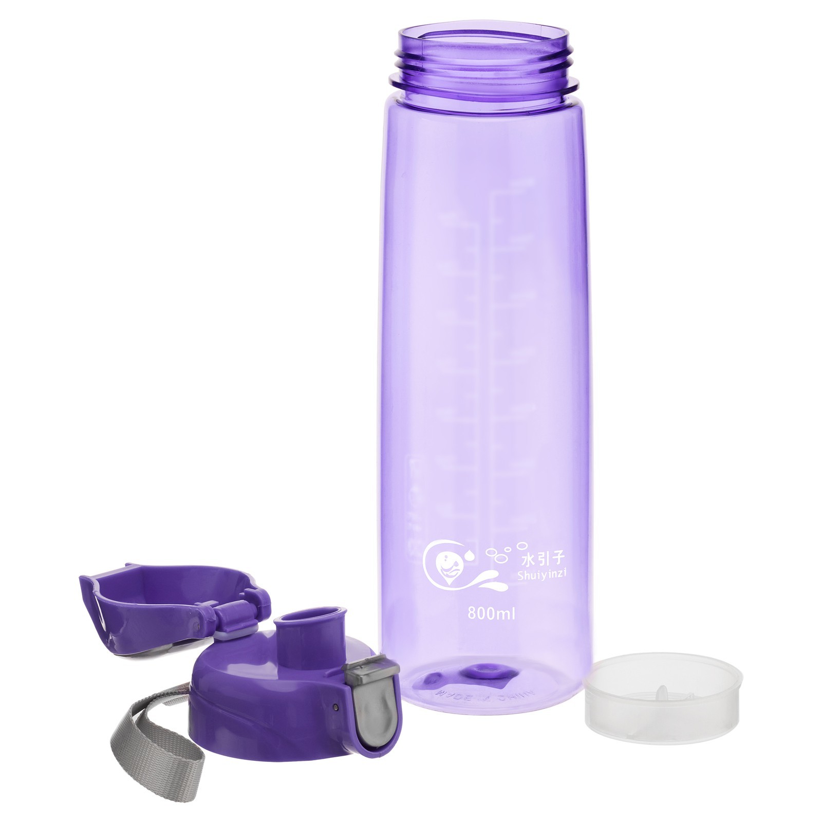 Бутылка для воды, 800 мл, "айви", сиреневая. Бутылка для воды — это удобный и практичный аксессуар, предназначенный для хранения и переноски жидкости. Она изготовлена из качественного и безопасного пищевого пластика. Бутылка оснащена крышкой, которая обеспечивает герметичность и предотвращает протекание. Благодаря своей компактности и лёгкости, она идеально подходит для использования в повседневной жизни, особенно во время занятий спортом или активного отдыха. Цвет: Сиреневый Объём, мл: 800 Материал: Пластик Вид: Бутылка Особенности: С ситом Особенности: На подвесе Особенности: С мерной шкалой Особенности: С поильником  развернуть описание ▼