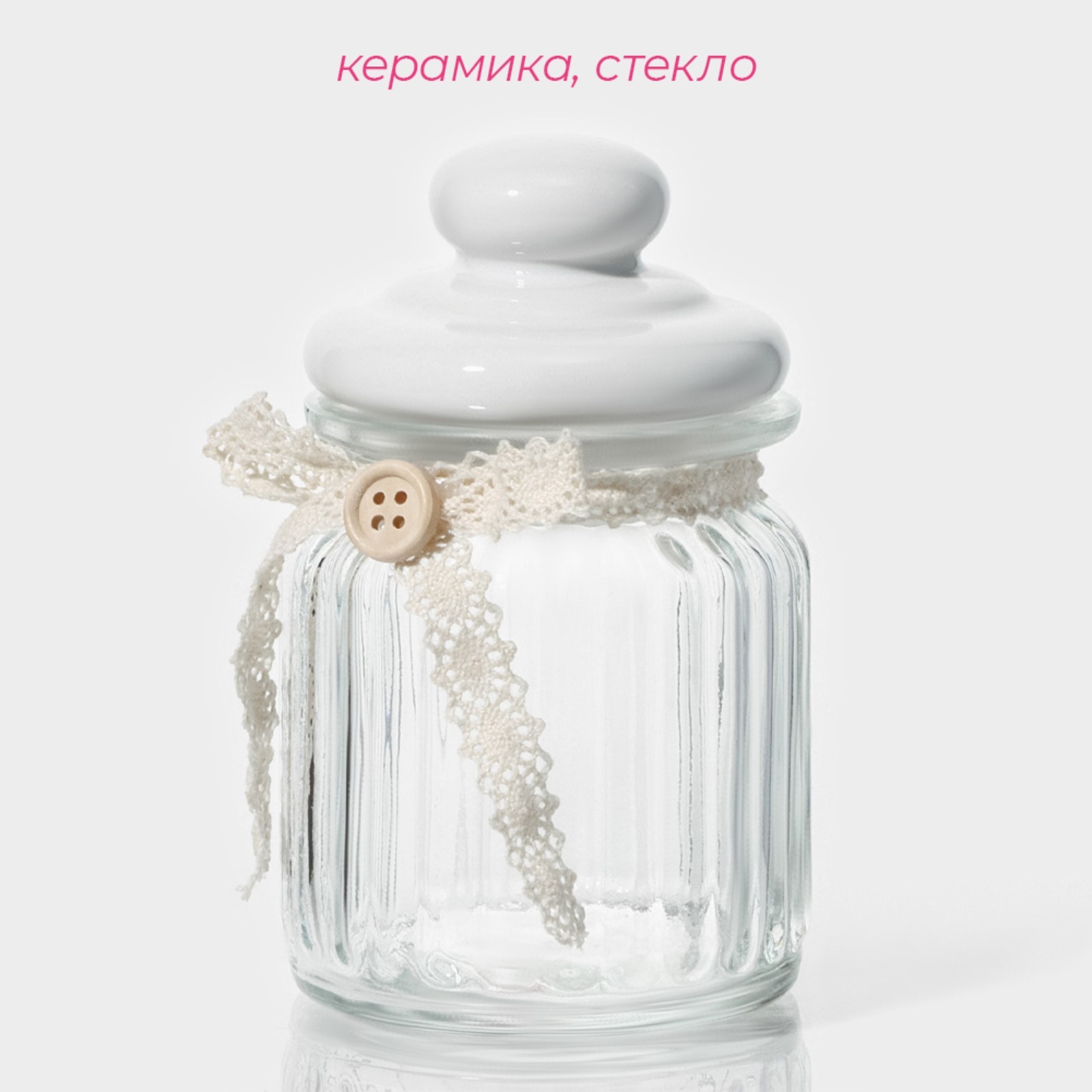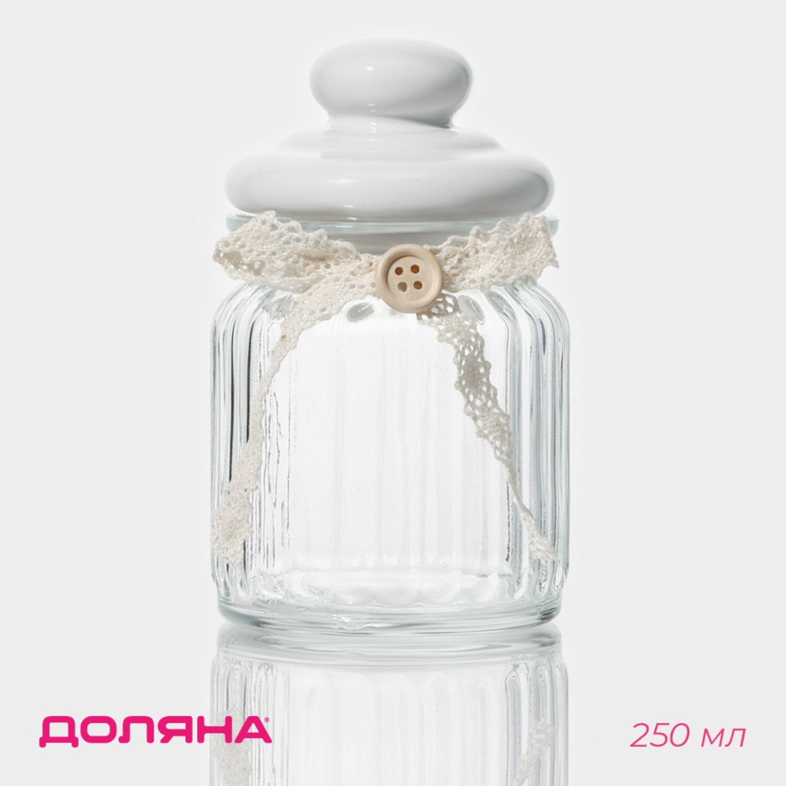 Банка стеклянная для сыпучих продуктов с керамической крышкой доляна «варенье», 250 мл, 8x13 см