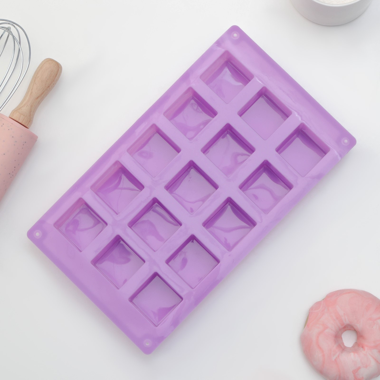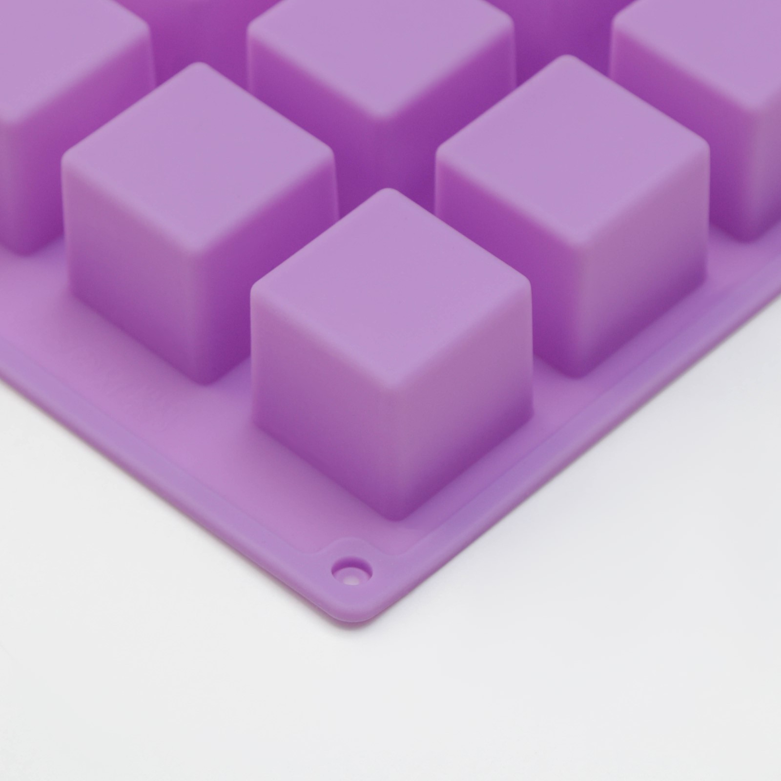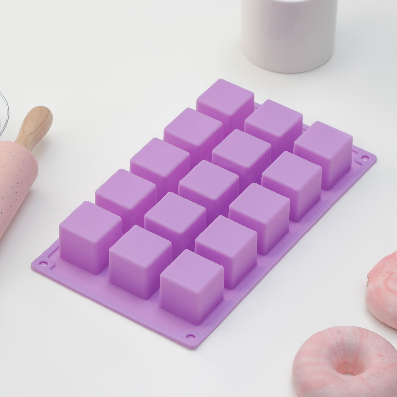 Форма силиконовая для выпечки доляна «фигуры.куб», 26x15x3,2 см, 15 ячеек (3,4x3,4см), цвет фиолетовый