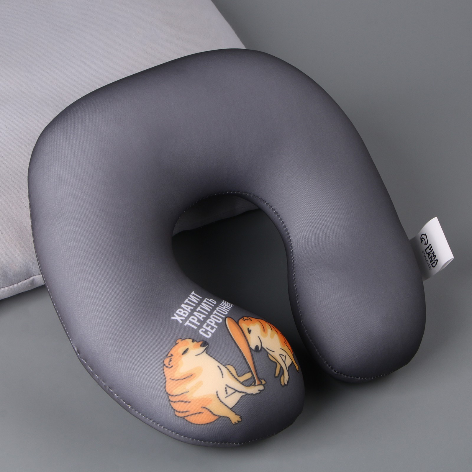 Подушка для путешествий антистресс «серотонин». Подушка для путешествий - необходимый аксессуар для тех, кто много путешествует, проводит много часов за рулем и просто в переездах. Она идеально поддерживает шею, предотвращая неприятные ощущения и усталость, а также дает возможность отдохнуть даже в самых трудных условиях. Подушка легко помещается в ручную кладь и занимает минимум места, поэтому можно взять в самолет, машину, и даже в поездку на поезде. Цвет: Серый Для кого: Унисекс Материал: Полиэстер Материал: Полистирол Особенности: Антистресс Температурное ограничение: Нет  развернуть описание ▼