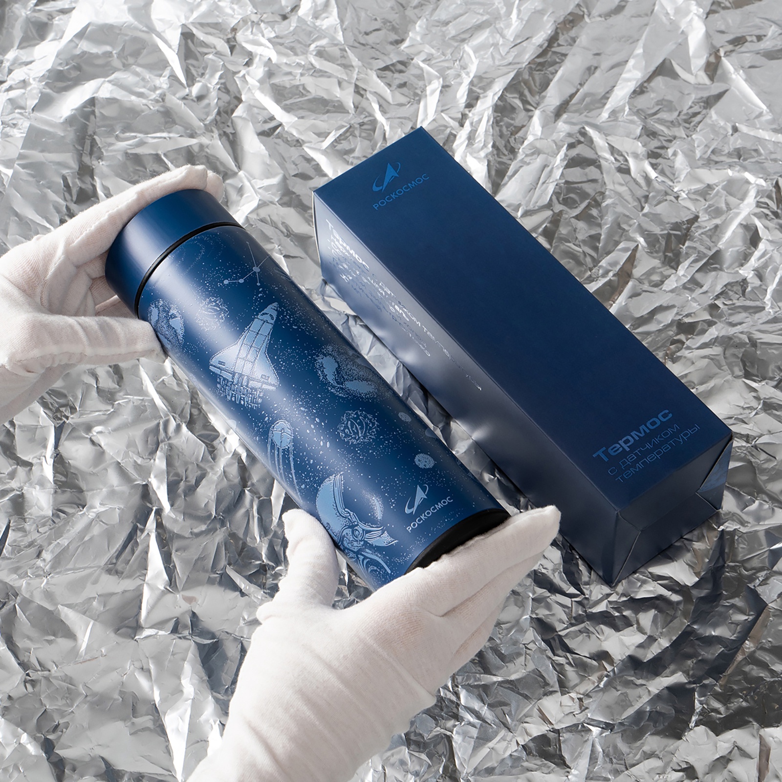 Термос с термометром роскосмос х Onlytop, 500 мл, цвет синий