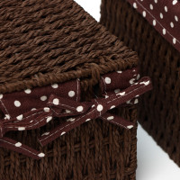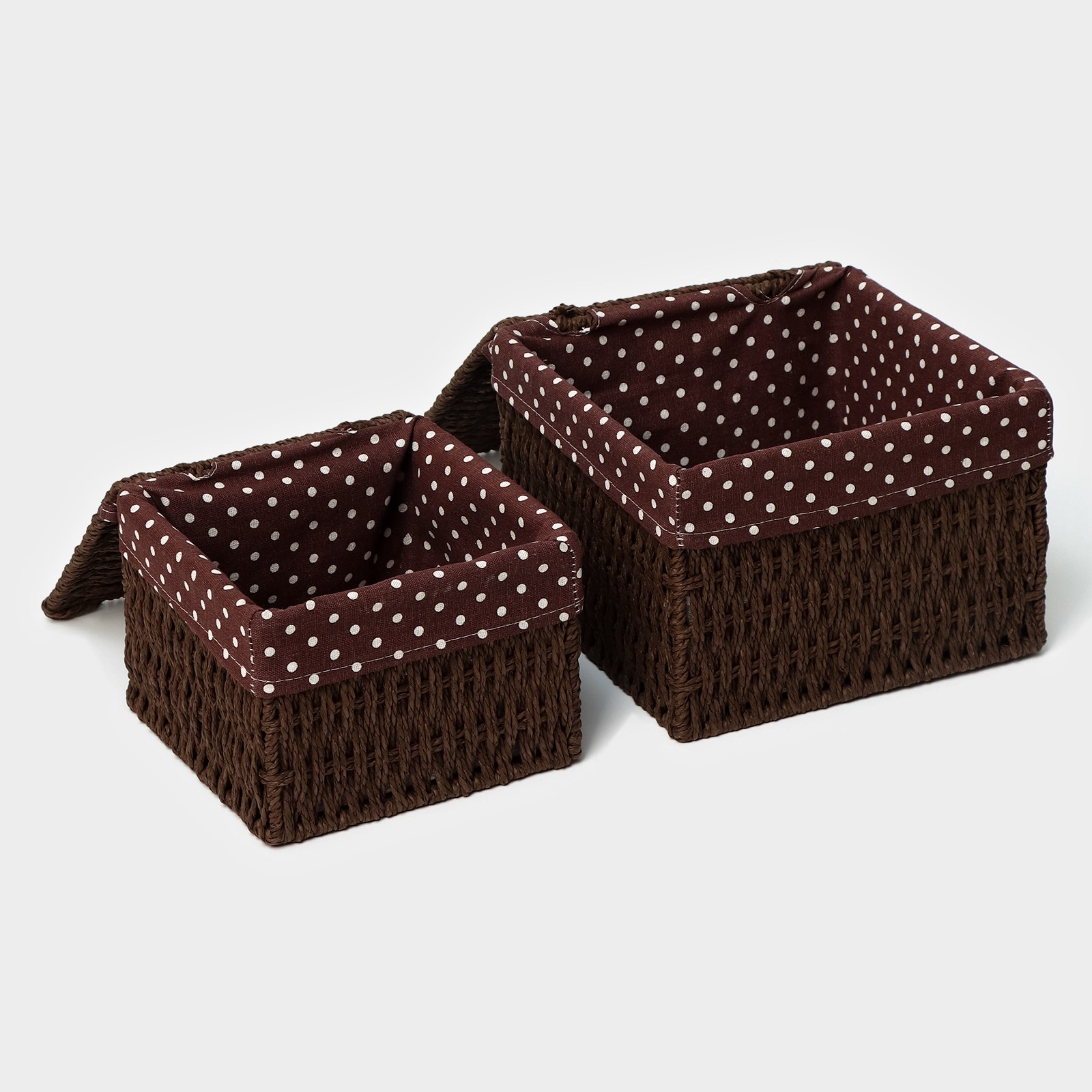 Array. Набор интерьерных корзин с крышкой ручной работы - это идеальный выбор для тех, кто ценит изысканность, уют и индивидуальный подход в оформлении своего дома или офиса. Преимущества: Эти уникальные корзины станут не только стильным дополнением к вашему интерьеру, но и практичным решением для хранения различных предметов и организации пространства. Изготовленные из высококачественных натуральных эти интерьерные корзины обладают прочностью и долговечностью, сохраняя свой первозданный вид на протяжении многих лет. Каждая корзина выполнена с особым вниманием к деталям, благодаря чему они обладают неповторимым дизайном и характером. В набор входят корзины разных размеров и форм, что позволяет подобрать наиболее подходящий вариант для каждого конкретного случая. Вы сможете использовать их для хранения книг, журналов, игрушек, аксессуаров, косметики, а также для сервировки стола и украшения вашего дома. Интерьерные корзины ручной работы обладают не только функциональностью, но и эстетическим совершенством. Они гармонично впишутся в любой интерьер, будь то классический, современный, скандинавский, бохо или эко-стиль. Такие корзины способны подчеркнуть вашу индивидуальность, стать ярким акцентом в интерьере или же дополнить общую композицию, создавая атмосферу уюта и тепла. Цвет: Коричневый Форма: Квадратная Ширина, см: 20 Ширина, см: 25 Высота, см: 15 Высота, см: 18 Глубина, см: 20 Глубина, см: 25 parts count: 0 Крышка: Да Материал: Бумага Основной материал: Бумага Форма: Квадрат, куб  развернуть описание ▼