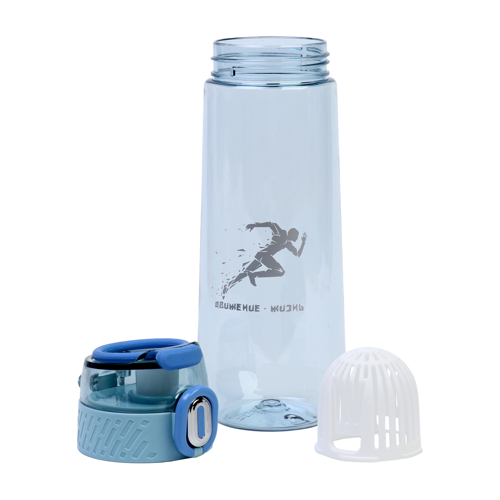 Бутылка для воды, 750 мл, "движение - жизнь", голубая. Бутылка для воды — это удобный и практичный аксессуар, предназначенный для хранения и переноски жидкости. Она изготовлена из качественного и безопасного пищевого пластика. Бутылка оснащена крышкой, которая обеспечивает герметичность и предотвращает протекание. Благодаря своей компактности и лёгкости, она идеально подходит для использования в повседневной жизни, особенно во время занятий спортом или активного отдыха. Цвет: Голубой Объём, мл: 750 Материал: Пластик Вид: Бутылка Особенности: С ситом Особенности: На подвесе  развернуть описание ▼