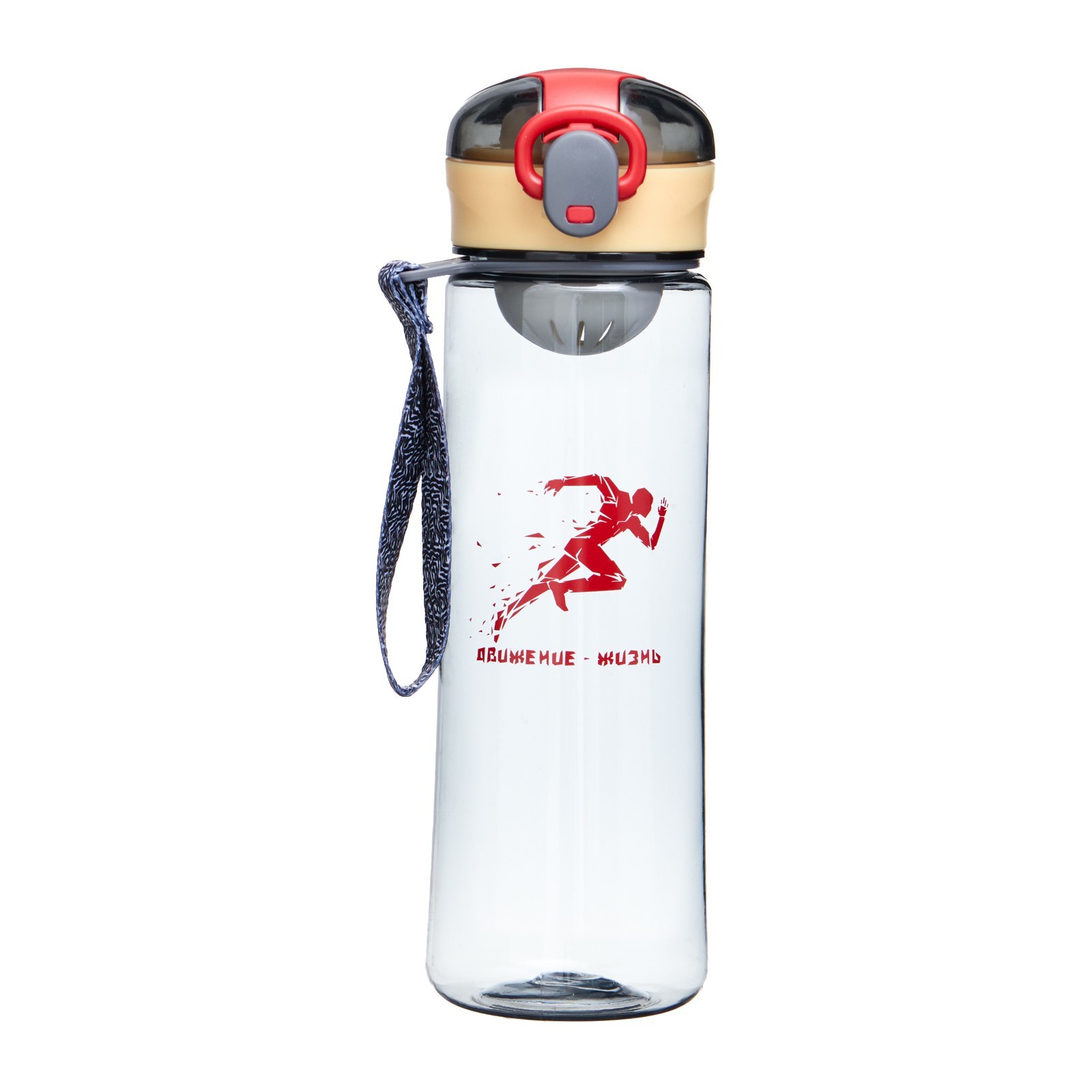 Бутылка для воды, 500 мл, "движение - жизнь", с поильником. Спортивная бутылка для воды идеально подойдет для всех, кто ведет активный образ жизни. Это стильный аксессуар, который не только позволит вам утолить жажду, но и станет незаменимым атрибутом для занятий спортом, туризма и пеших прогулок. С этой спортивной бутылкой вы всегда будете иметь возможность поддерживать свой организм правильным уровнем водного баланса. Она станет вашим верным спутником как на тренировках, так и в повседневной жизни. Благодаря ее удобной форме и вместительности в 500 мл, она легко помещается в сумке или рюкзаке. Эта бутылочка для воды идеальна для использования в школе и на спортивных занятиях детей и малышей. Она изготовлена из прочного и экологически чистого пластика, который не повреждается при активном использовании и позволяет сохранять воду свежей и чистой на протяжении всего дня. Бутылка оборудована герметичной крышкой с поильником и удобным ремешком, который позволяет носить ее с собой или крепить к сумке или рюкзаку. Подарите эту бутылку маме, бабушке, папе, другу, подруге, сестре на любой праздник – она станет полезным и практичным подарком для здорового образа жизни! Цвет: Серый Объём, мл: 500 Материал: Пластик Вид: Бутылка Особенности: С ситом Особенности: На подвесе Особенности: На кнопке  развернуть описание ▼
