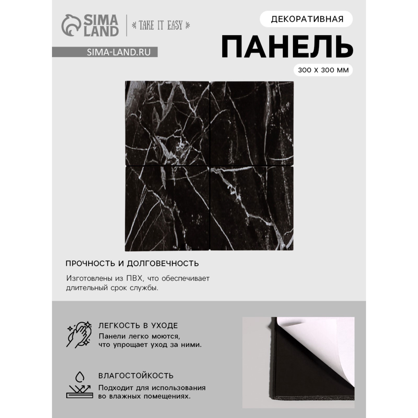 Панель пвх самоклеящаяся take it easy «мрамор», мягкая, 300 300 мм, цвет чёрный. Самоклеющиеся ПВХ - панели: решение для быстрого ремонта Представляют собой простой и удобный материал для быстрой отделки помещений. Используют для обновления интерьера квартир, офисов и коммерческих объектов. Данный облицовочный материал позволяет быстро преобразить пространство, создать уют и освежить отделку стен. Преимущества самоклеющихся панелей Простота установки: монтаж панелей не требует специальных инструментов и опыта, так как одна сторона покрыта клеевым слоем.Влагостойкость: панели устойчивы к воздействию влаги, их можно успешно применять в кухнях и ванных комнатах.Легкий уход: поверхность панелей легко очищается мягкой губкой с нейтральными моющими средствами.Экономия времени: благодаря простоте наклеивания монтаж занимает минимум времени, позволяя быстро завершить ремонтные работы.ПрименениеРекомендации по установке и эксплуатации Не применяйте панели в местах с прямым контактом воды, таких как пол или зона готовки на кухне.Перед укладкой очистите стену от пыли и грязи, обработав спиртосодержащим раствором для удаления жирных пятен.Используйте дополнительный клей для ПВХ для усиления фиксации, особенно на сложных поверхностях.Избегайте чрезмерного натяжения при наклейке, иначе возможны деформации.Цвет:Чёрный|Длина, см:30|Ширина, см:30|Тематика:Мрамор|Одноцветный:Нет|Подходит для ванной комнаты:Нет|Страна:Китай  развернуть описание ▼