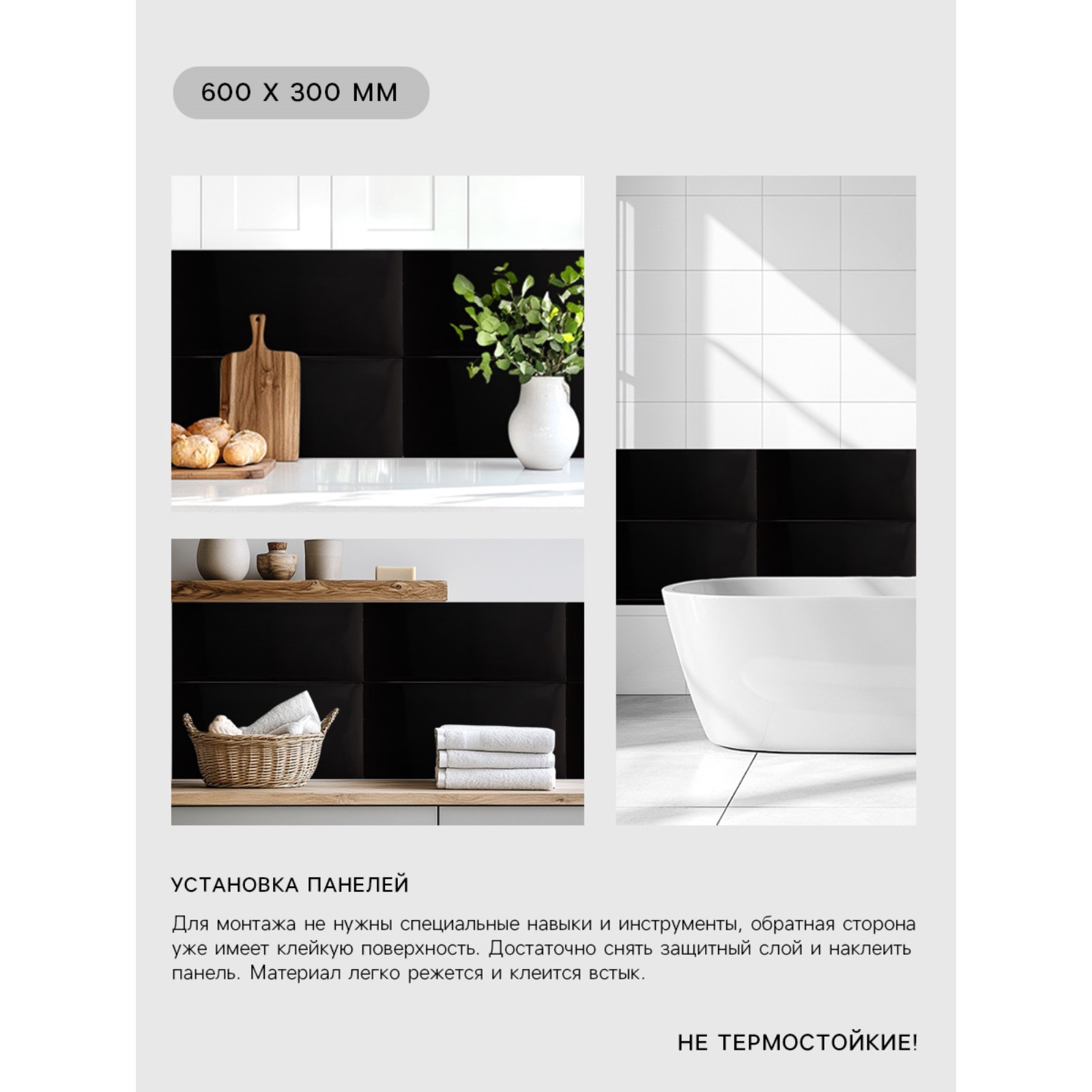Панель пвх самоклеящаяся take it easy, 600 300 мм, цвет чёрный. Самоклеющиеся ПВХ - панели: решение для быстрого ремонта Представляют собой простой и удобный материал для быстрой отделки помещений. Используют для обновления интерьера квартир, офисов и коммерческих объектов. Данный облицовочный материал позволяет быстро преобразить пространство, создать уют и освежить отделку стен. Преимущества самоклеющихся панелей Простота установки: монтаж панелей не требует специальных инструментов и опыта, так как одна сторона покрыта клеевым слоем.Влагостойкость: панели устойчивы к воздействию влаги, их можно успешно применять в кухнях и ванных комнатах.Легкий уход: поверхность панелей легко очищается мягкой губкой с нейтральными моющими средствами.Экономия времени: благодаря простоте наклеивания монтаж занимает минимум времени, позволяя быстро завершить ремонтные работы.ПрименениеРекомендации по установке и эксплуатации Не применяйте панели в местах с прямым контактом воды, таких как пол или зона готовки на кухне.Перед укладкой очистите стену от пыли и грязи, обработав спиртосодержащим раствором для удаления жирных пятен.Используйте дополнительный клей для ПВХ для усиления фиксации, особенно на сложных поверхностях.Избегайте чрезмерного натяжения при наклейке, иначе возможны деформации.Цвет:Чёрный|Длина, см:60|Ширина, см:30|Тематика:Однотонная|Одноцветный:Да|Подходит для ванной комнаты:Нет|Страна:Китай  развернуть описание ▼